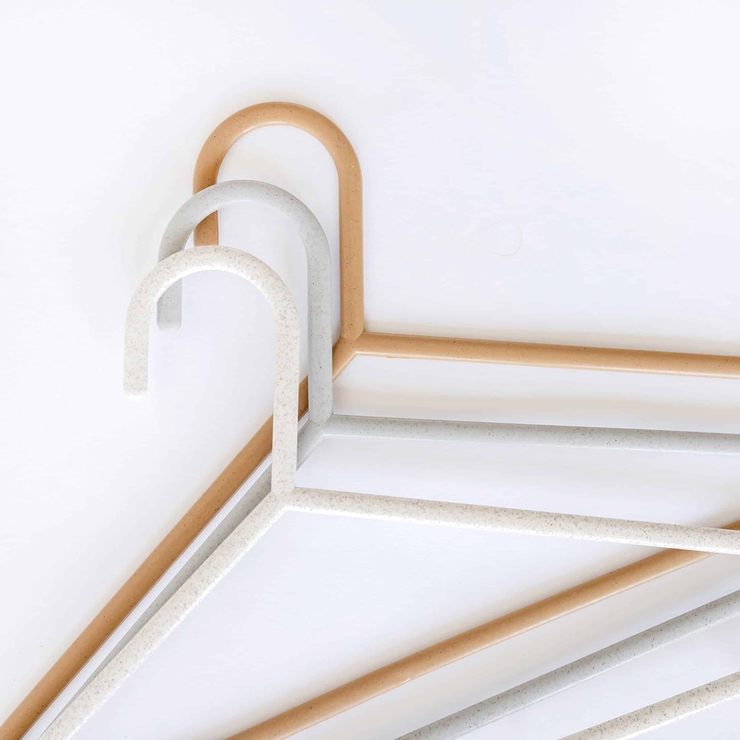 Die Kleiderbügel bestehen aus hochwertigem, robustem Kunststoff. 3 Sprouts achtet bei der Materialauswahl auf Sicherheit und Langlebigkeit, sodass die Bügel frei von schädlichen Substanzen sind und den täglichen Belastungen standhalten.