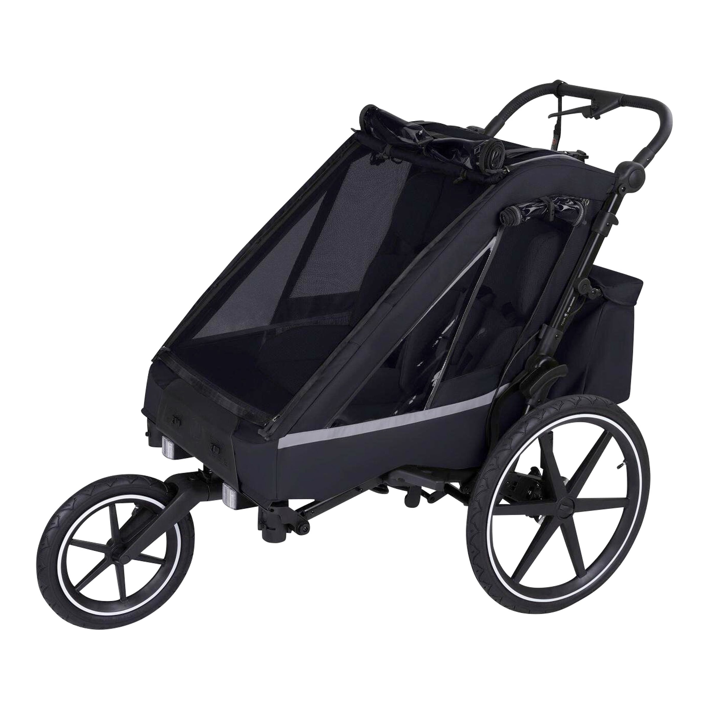 - Verbesserte Handhabung für Eltern: Ergonomische Griffe und eine angepasste Geometrie sorgen für eine komfortable Führung des Kinderwagens, selbst bei sportlichen Aktivitäten und schnellen Manövern.