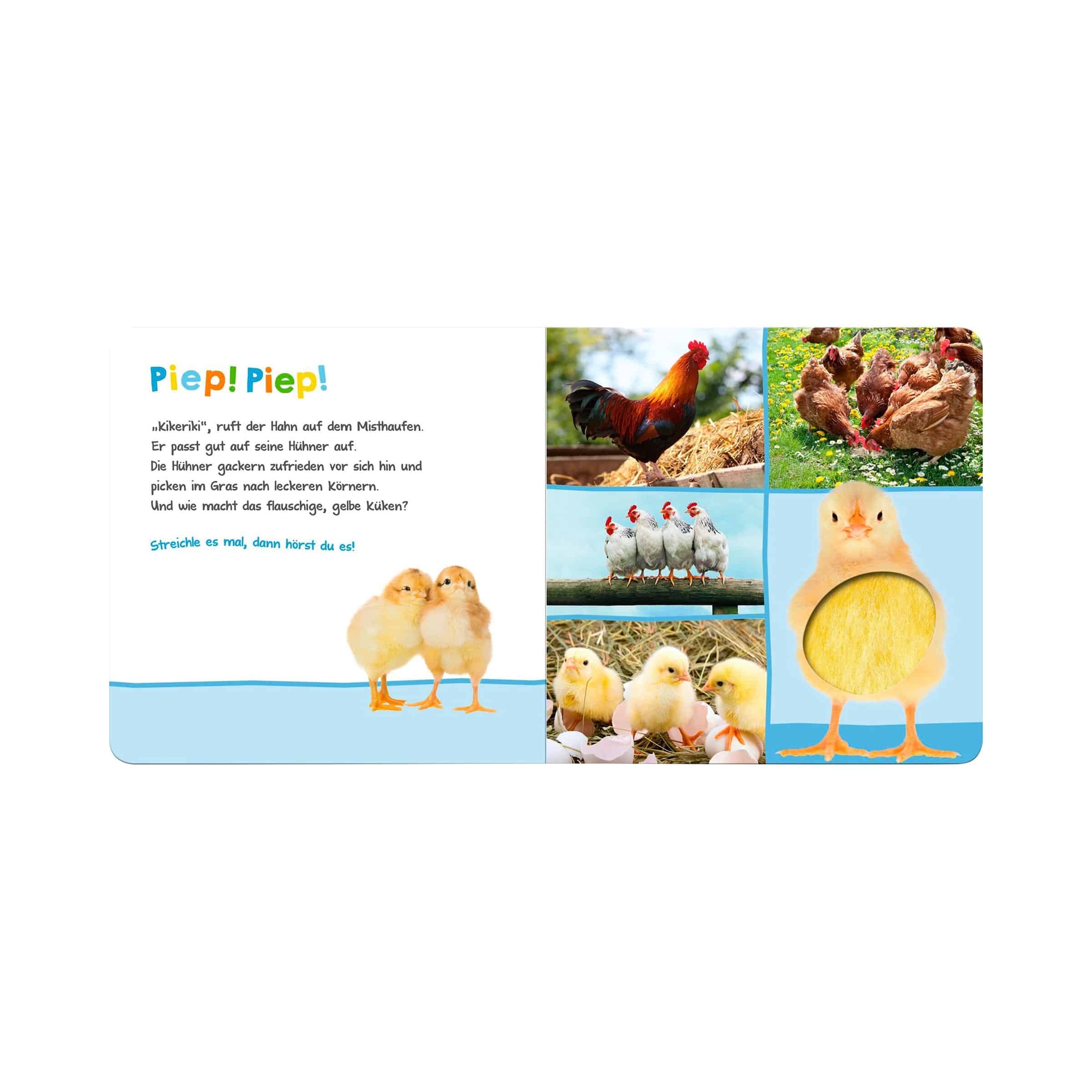 | Inhalt | Interaktive Geräusche von Bauernhoftieren, illustrierte Seiten |