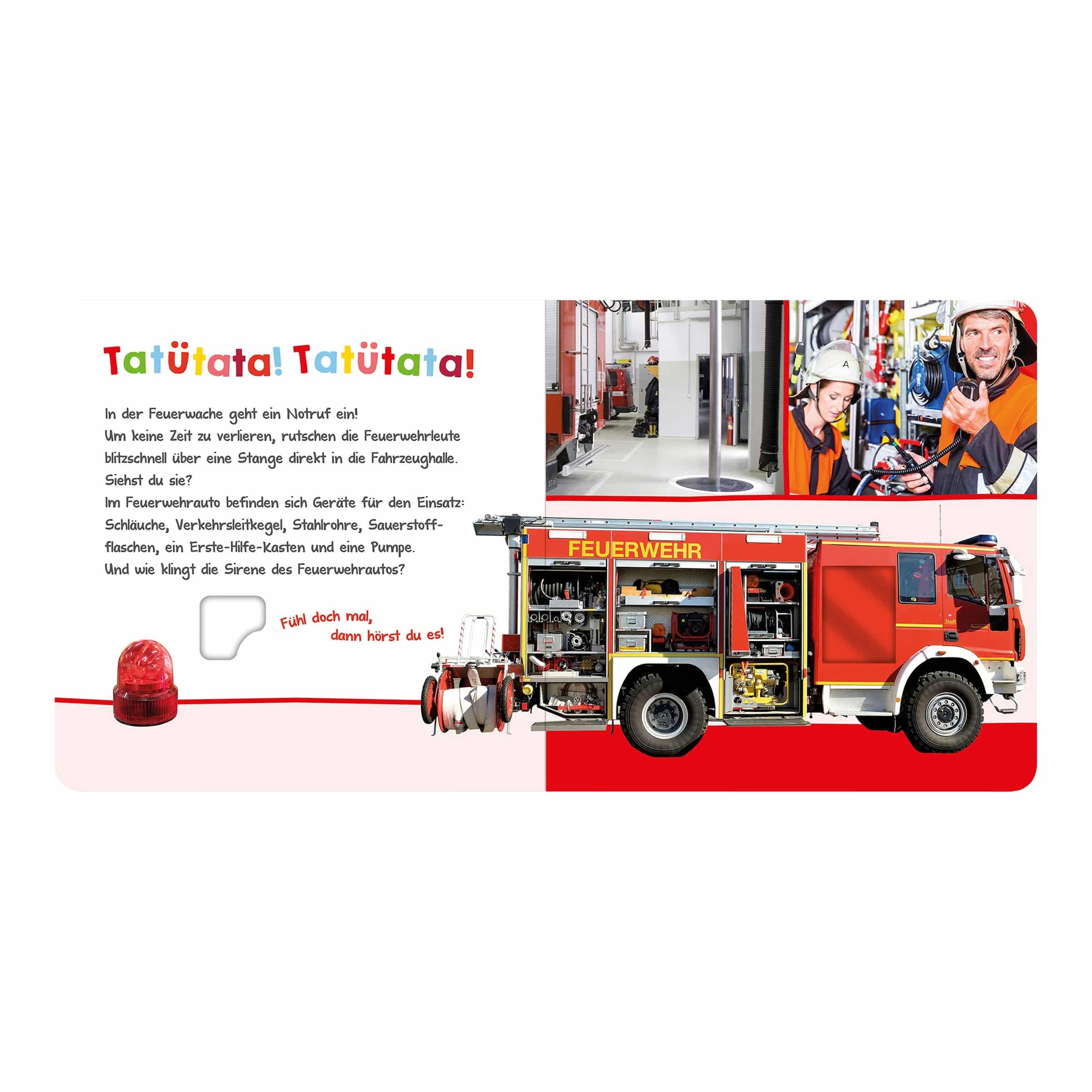 | Design | Farbige, ansprechende Illustrationen der Feuerwehrwelt, die zur Interaktion einladen. |