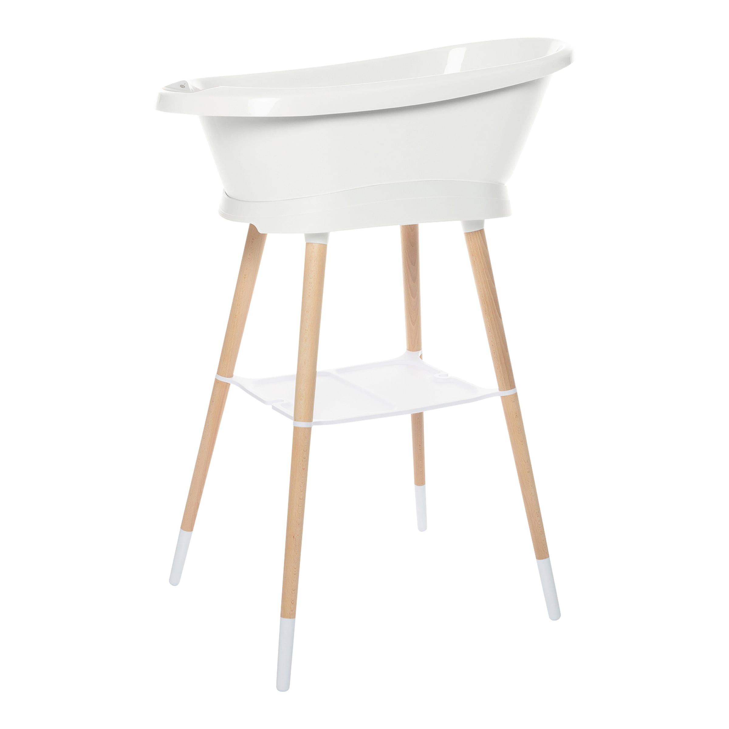 | Design-Merkmale | Stabiler Standfuß mit rutschfesten Gummifüßen für maximale Sicherheit. Ergonomische Höhe zur Entlastung des Rückens. Kompatibel mit Bébé-Jou Badeschalen und Babybadewannen. Glatte Oberflächen ohne scharfe Kanten. |