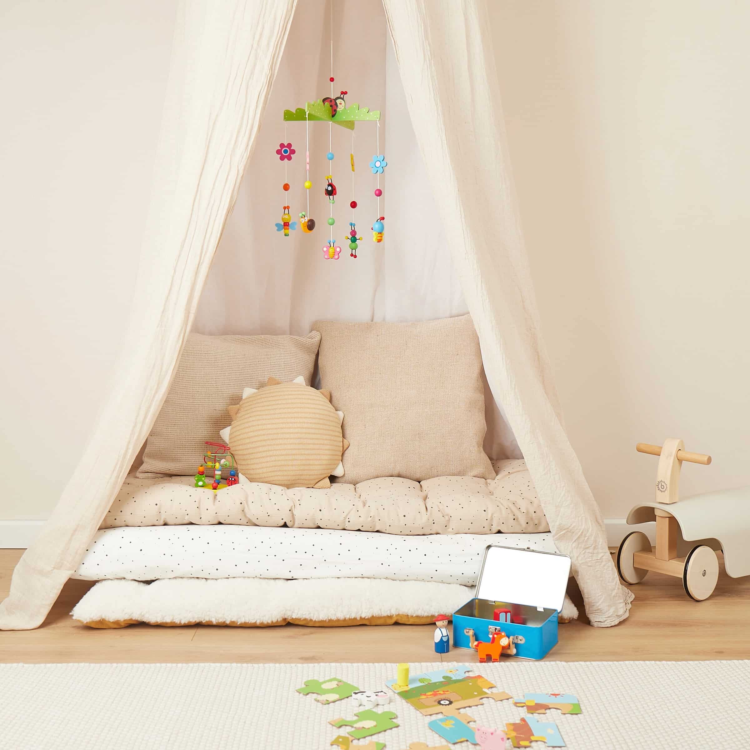 Suchen Sie nach einer stilvollen und beruhigenden Ergänzung für das Babyzimmer, die gleichzeitig die Sinne Ihres Kindes sanft anregt? Das Bieco Mobile Käferchen aus Holz ist die ideale Lösung, um eine friedliche Atmosphäre zu schaffen und die visuelle Entwicklung Ihres Babys auf natürliche Weise zu fördern. Speziell entworfen für Eltern, die Wert auf hochwertige Materialien und zeitloses Design legen.