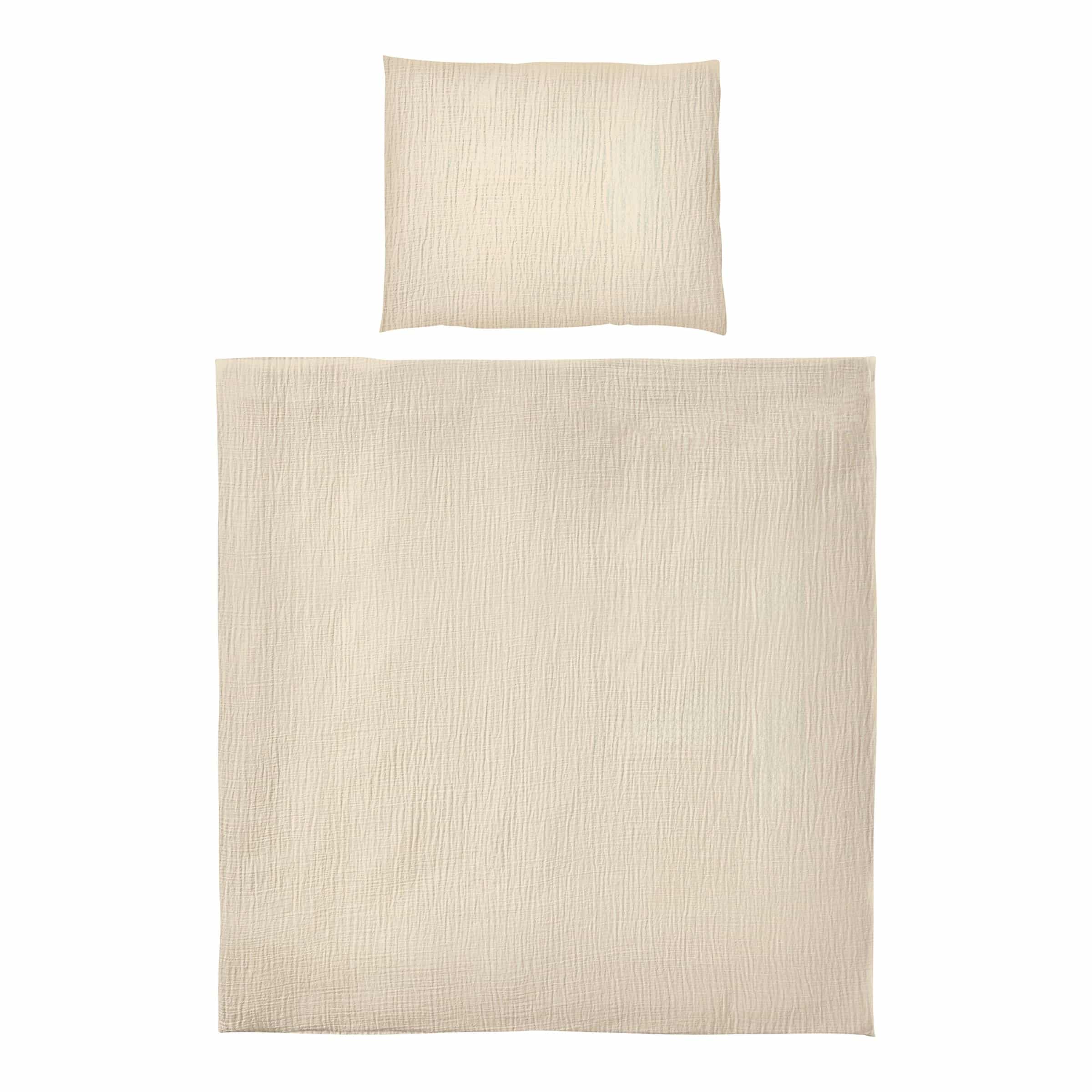 Musselin ist eine feine, luftdurchlässige Baumwollwebart, die sich durch ihre außergewöhnliche Weichheit, Atmungsaktivität und leichte Struktur auszeichnet. Diese Eigenschaften machen ihn ideal für Babybettwäsche, da er die Körpertemperatur reguliert, Feuchtigkeit aufnimmt und abgibt und sanft zur empfindlichen Babyhaut ist.