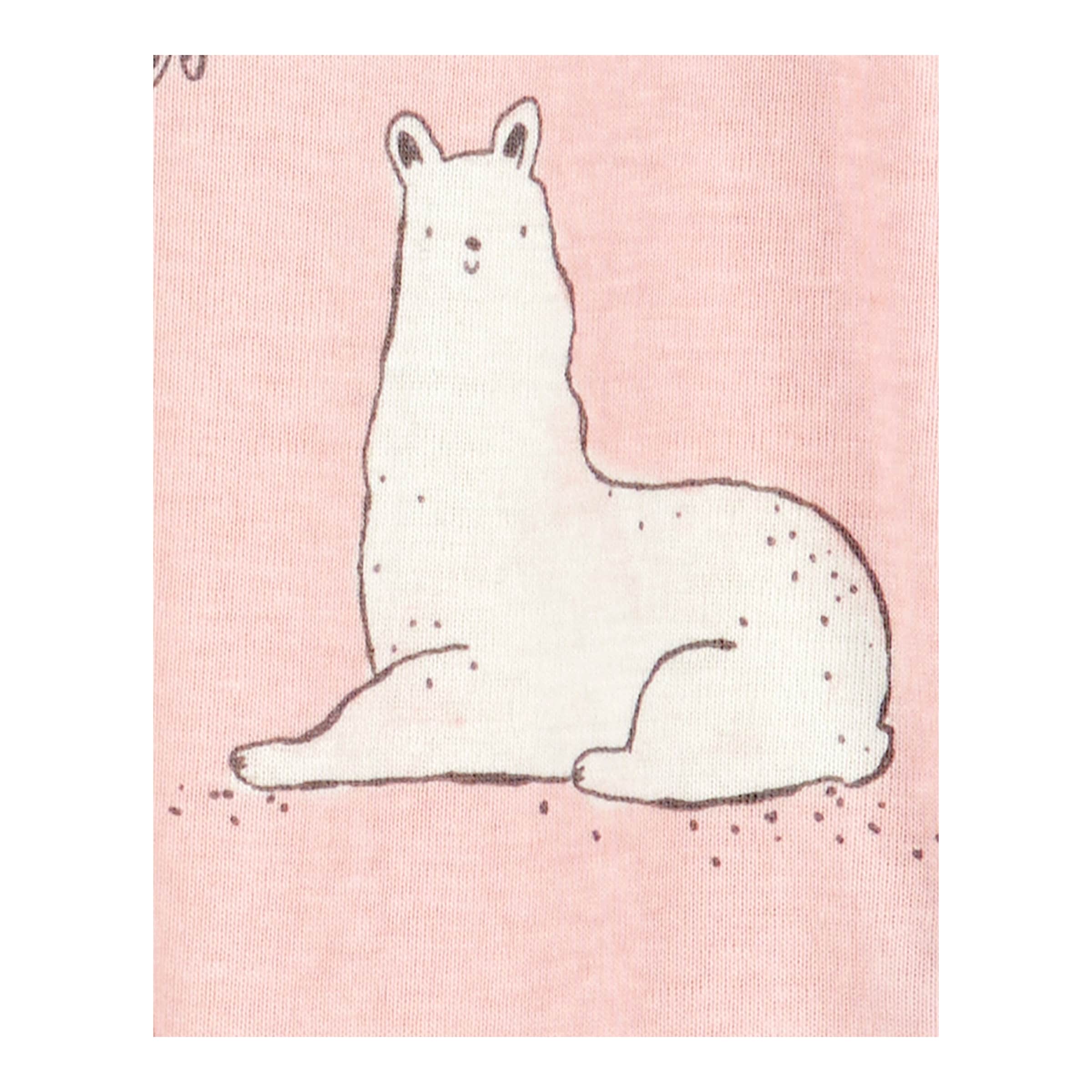 | Design-Merkmale | Durchgehender Reißverschluss mit Kinnschutz, integrierte Füße, elastische Bündchen. Das bezaubernde Lama-Punkte-Muster sorgt für gute Laune. |