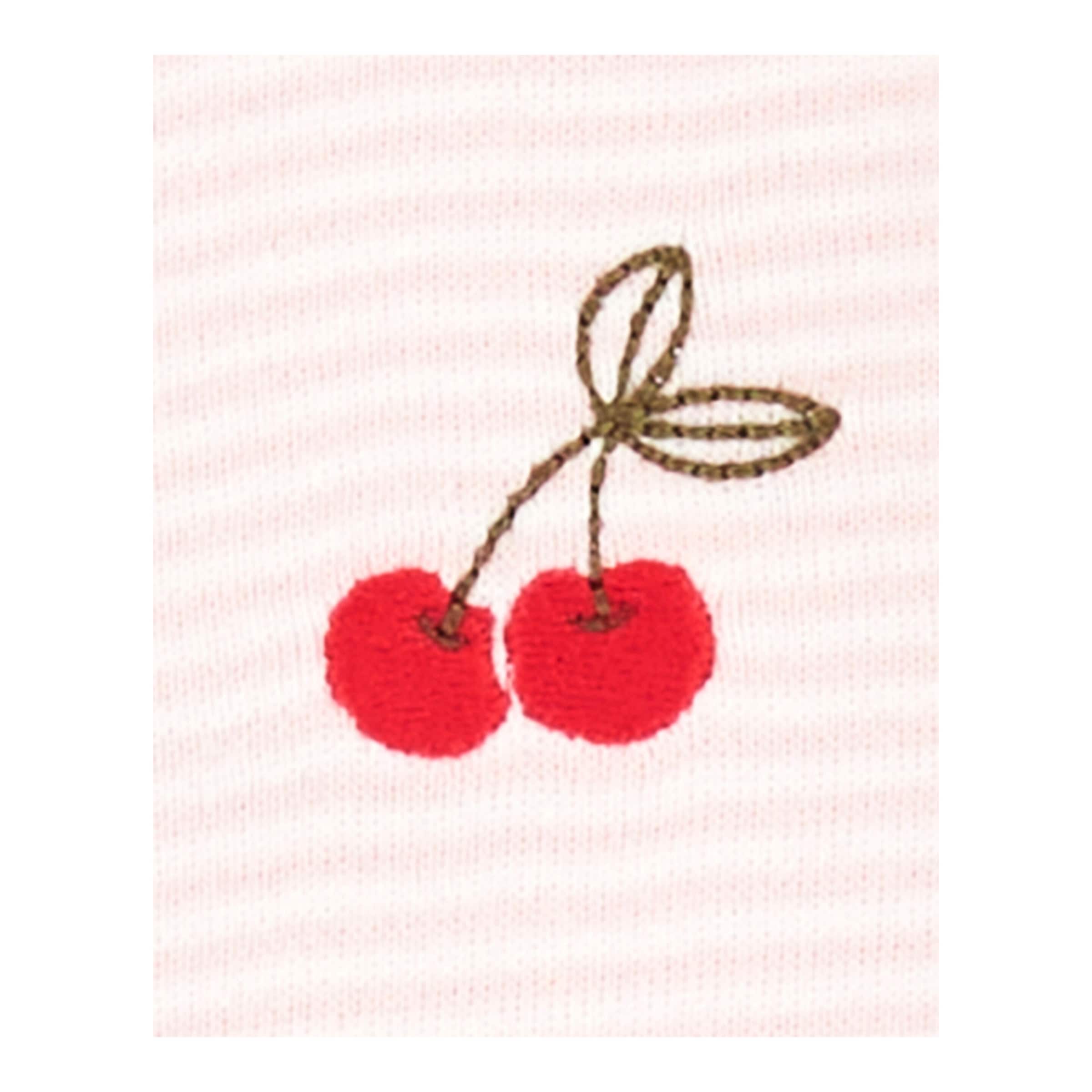 | Design | Ringelmuster mit Kirschen-Applikationen |