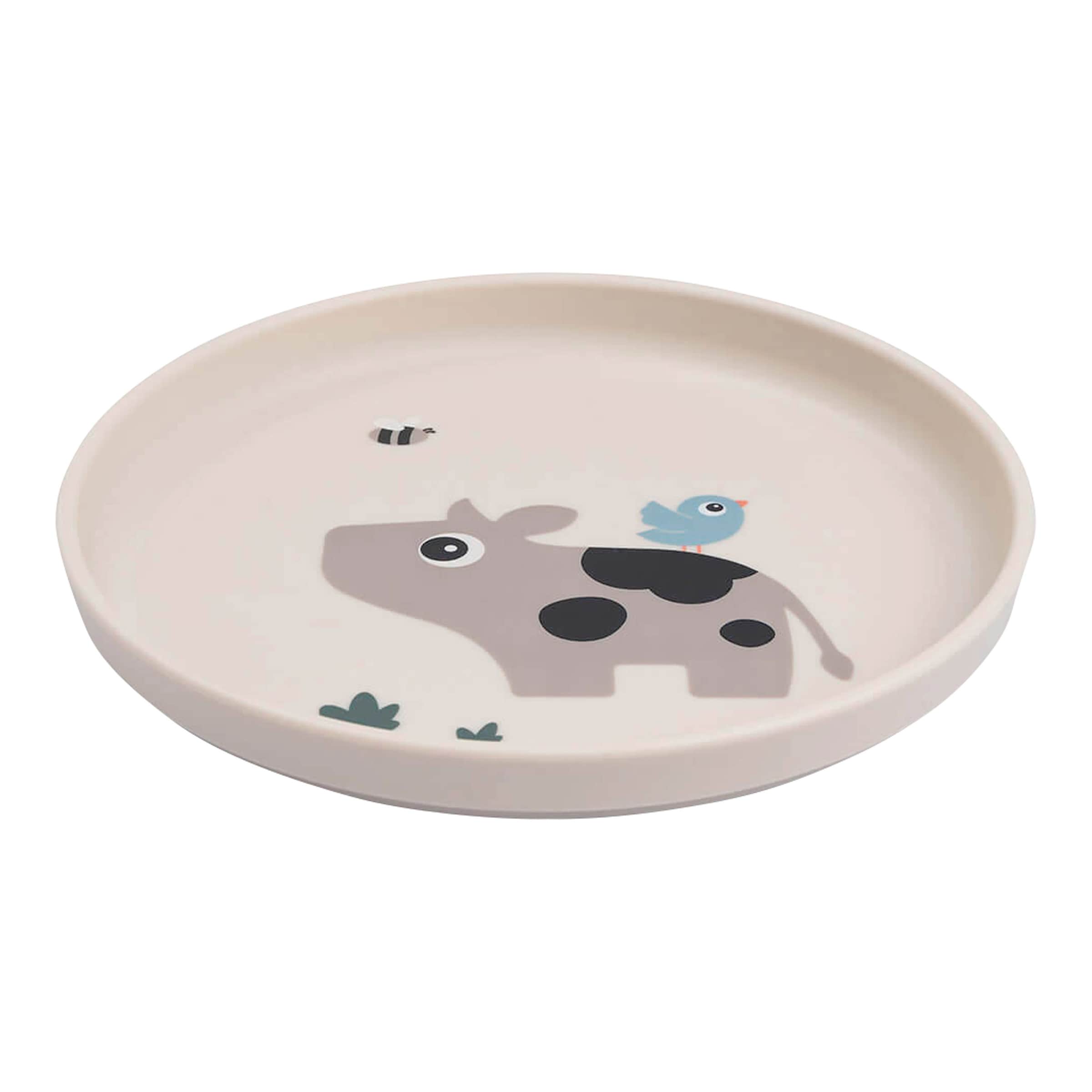 Der integrierte Saugnapf bietet einen sehr guten Halt auf glatten, sauberen Oberflächen wie Esstischen oder Hochstuhlschalen. Er reduziert effektiv das Risiko, dass der Teller vom Kind verschoben oder umgestoßen wird.