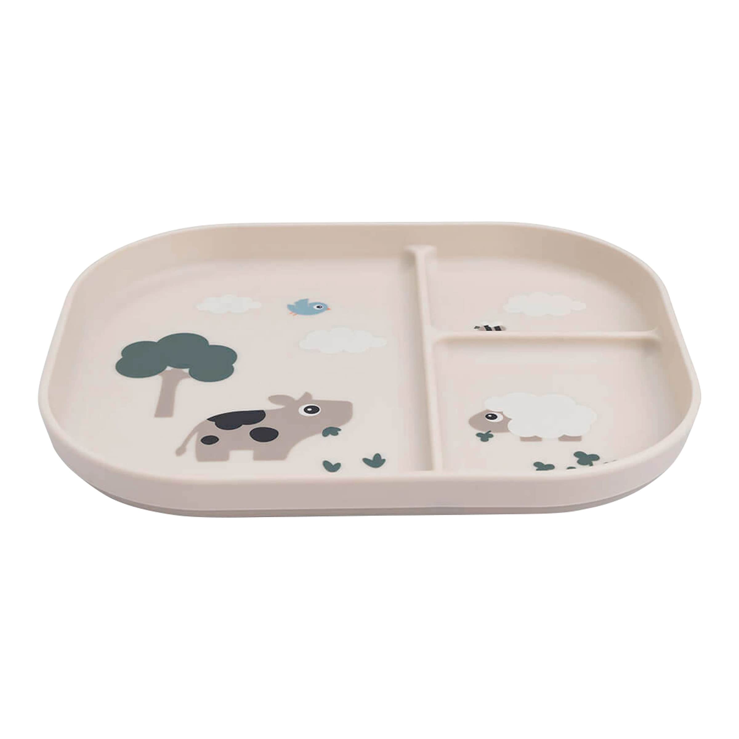 Die einzelnen Fächer des Tellers ermutigen Kinder, verschiedene Lebensmittel zu trennen und eigenständig zu greifen. Dies kann das Interesse an verschiedenen Speisen wecken und die Entwicklung der Feinmotorik fördern.