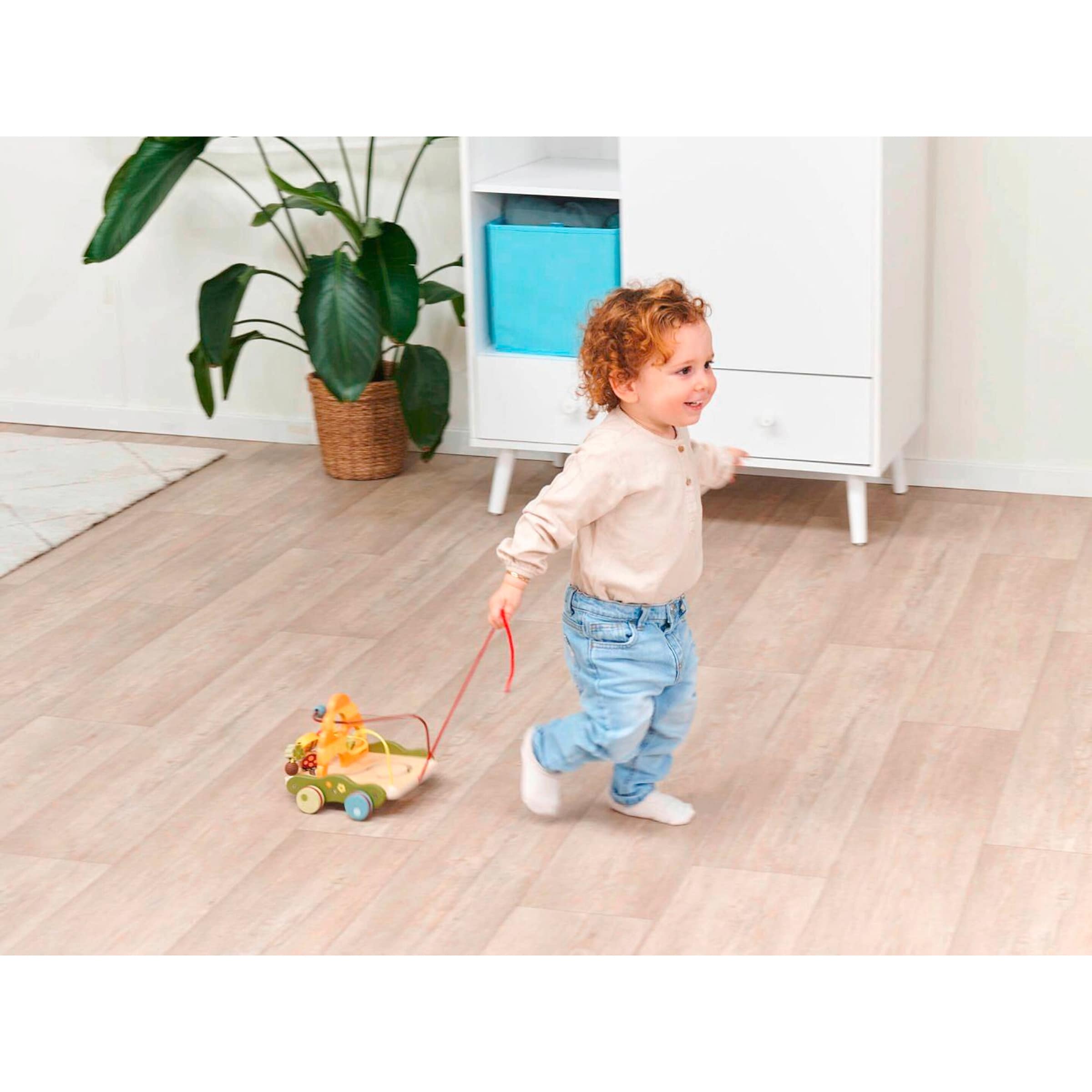- Fördert die Grobmotorik: Der Nachziehwagen motiviert Ihr Kind, sich zu bewegen, zu laufen und seine Beinmuskulatur zu stärken.