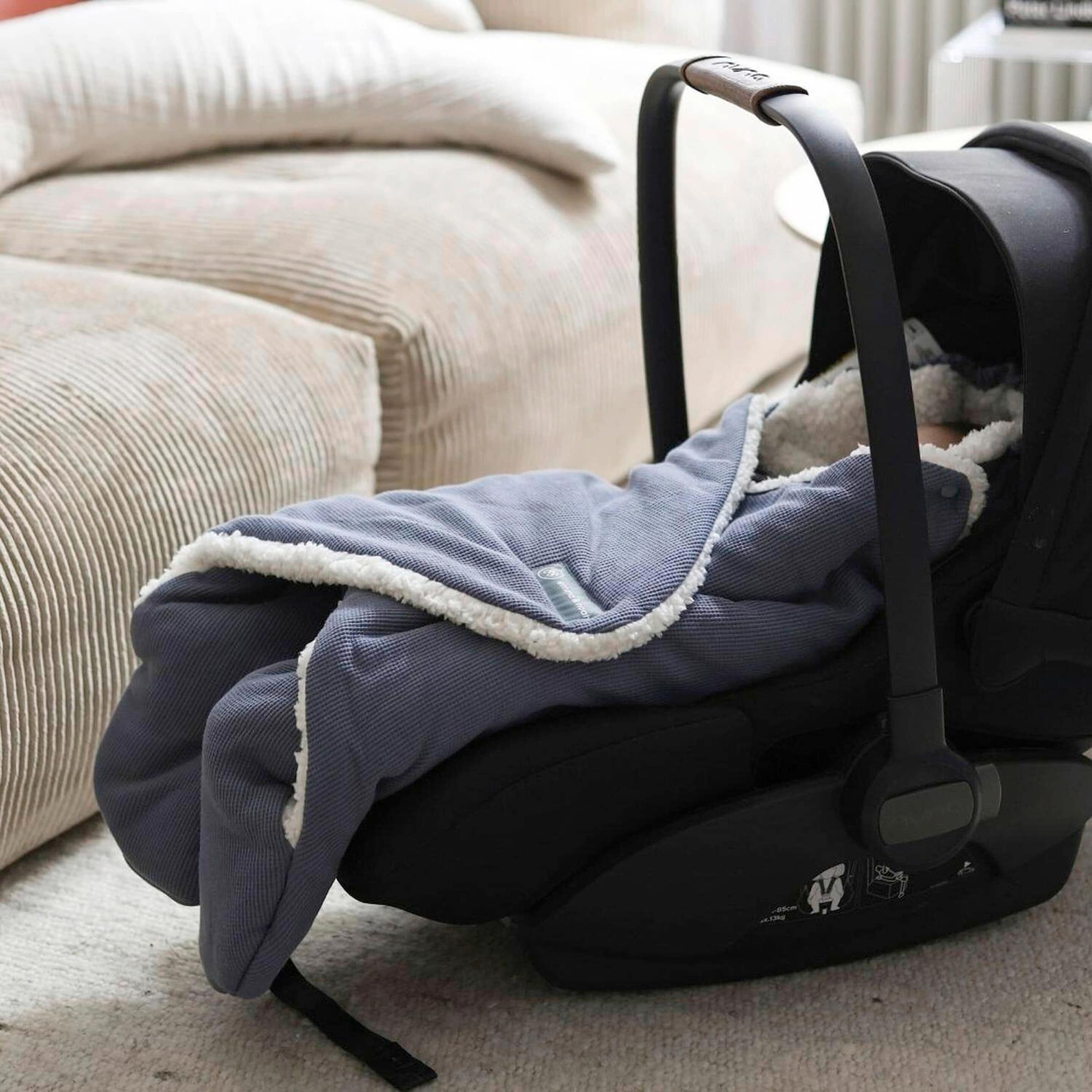 - Kinderwagen und Buggy: Perfekt geeignet, um Ihr Baby auch bei kühlerem Wetter im Freien warm zu halten. Die durchdachte Formgebung sorgt dafür, dass die Decke sicher im Sitz liegt.