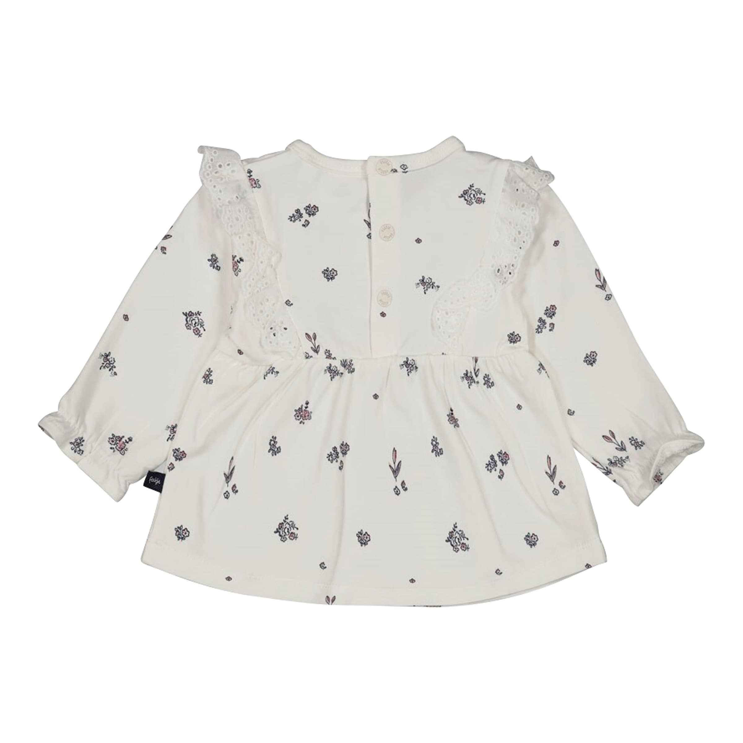 Entdecken Sie den Zauber des Feetje Shirts langarm mit Blumen und Rüschen – Komfort trifft auf bezaubernden Stil