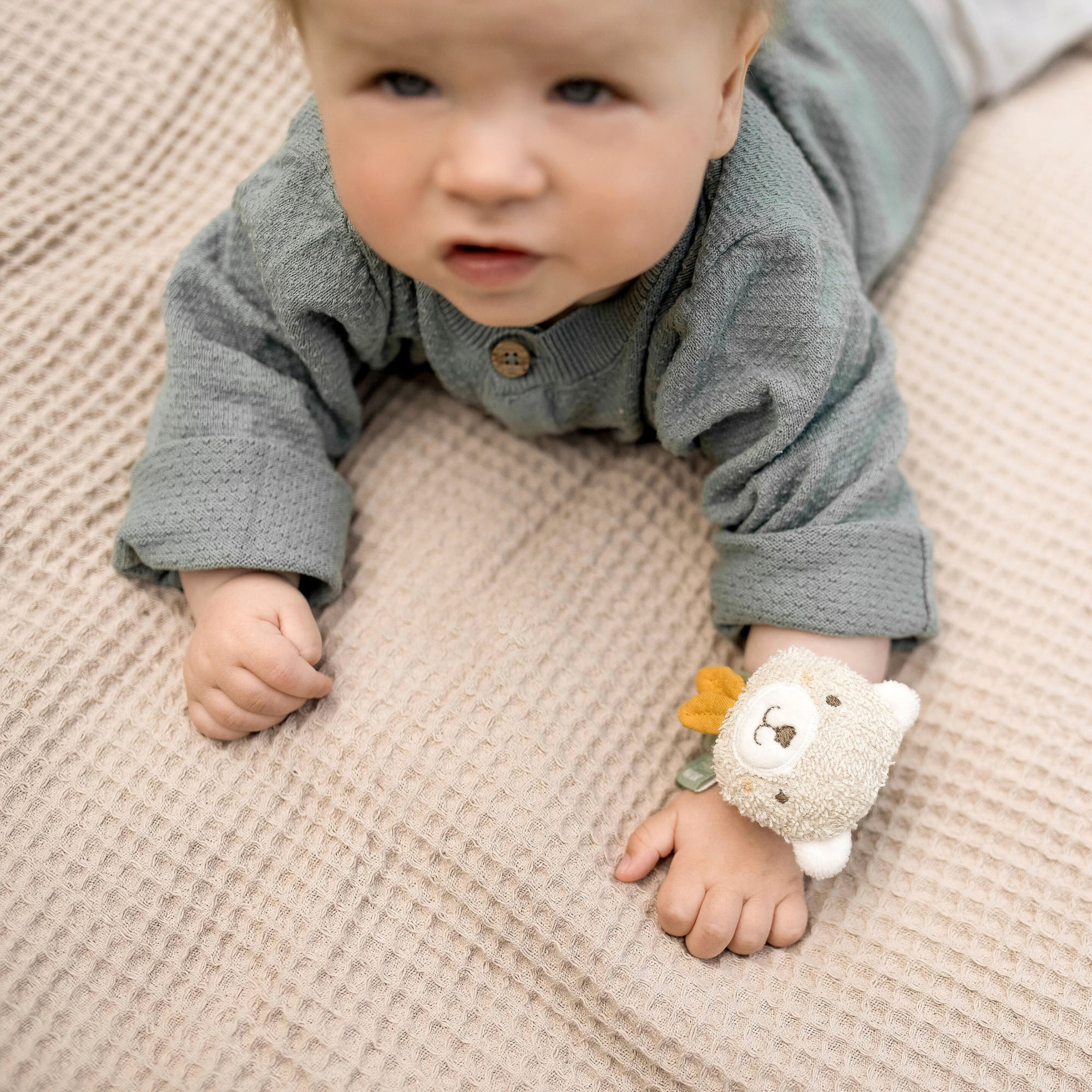 Entdecken Sie das Fehn Rasselarmband Bär fehnNATUR: Sanfte Stimulation für neugierige Entdecker
