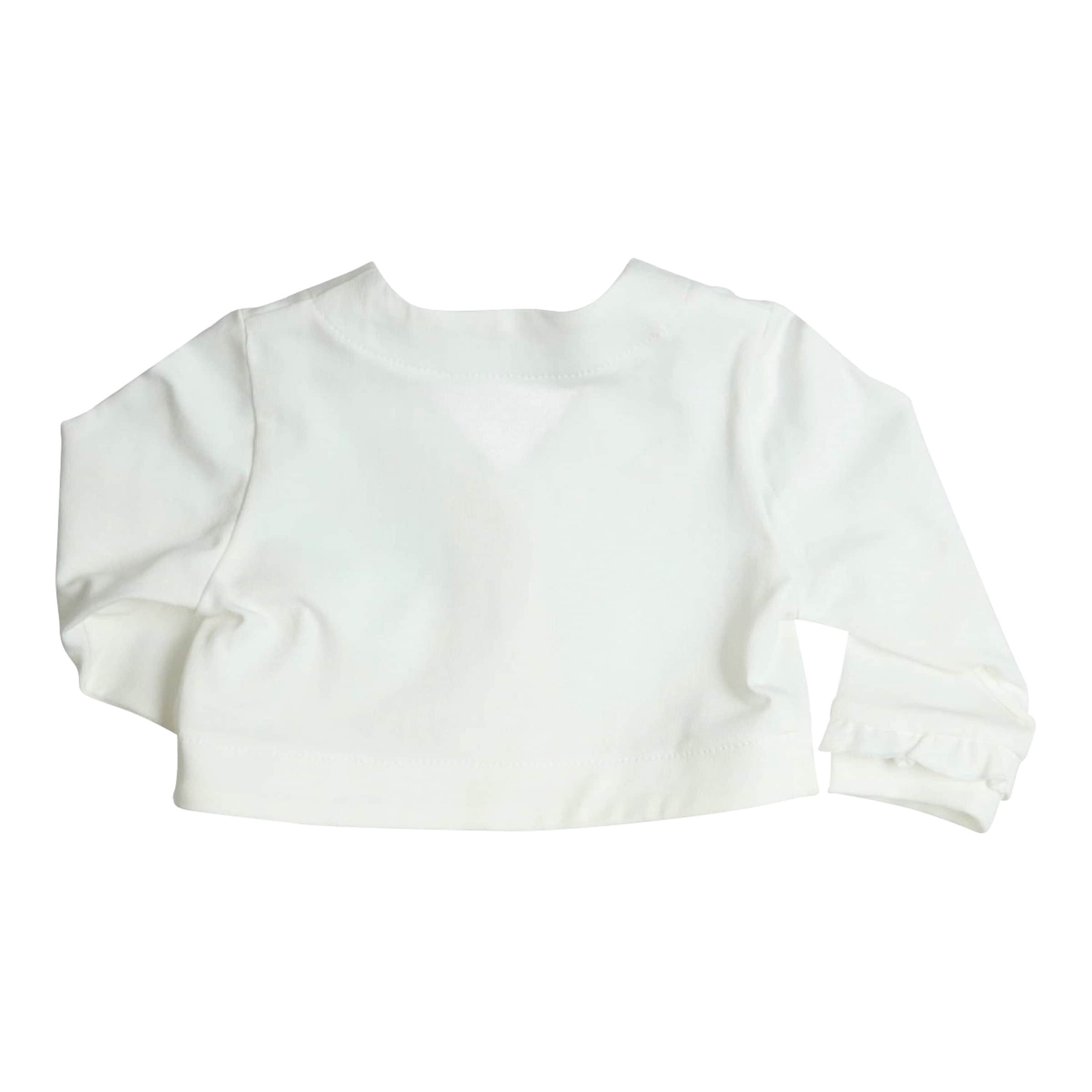 | Design-Merkmale | Elegante Rüschenverarbeitung am Saum und an den Ärmelabschlüssen, offener Schnitt für einfaches An- und Ausziehen. Dezente Farbgebung, die sich vielfältig kombinieren lässt. |