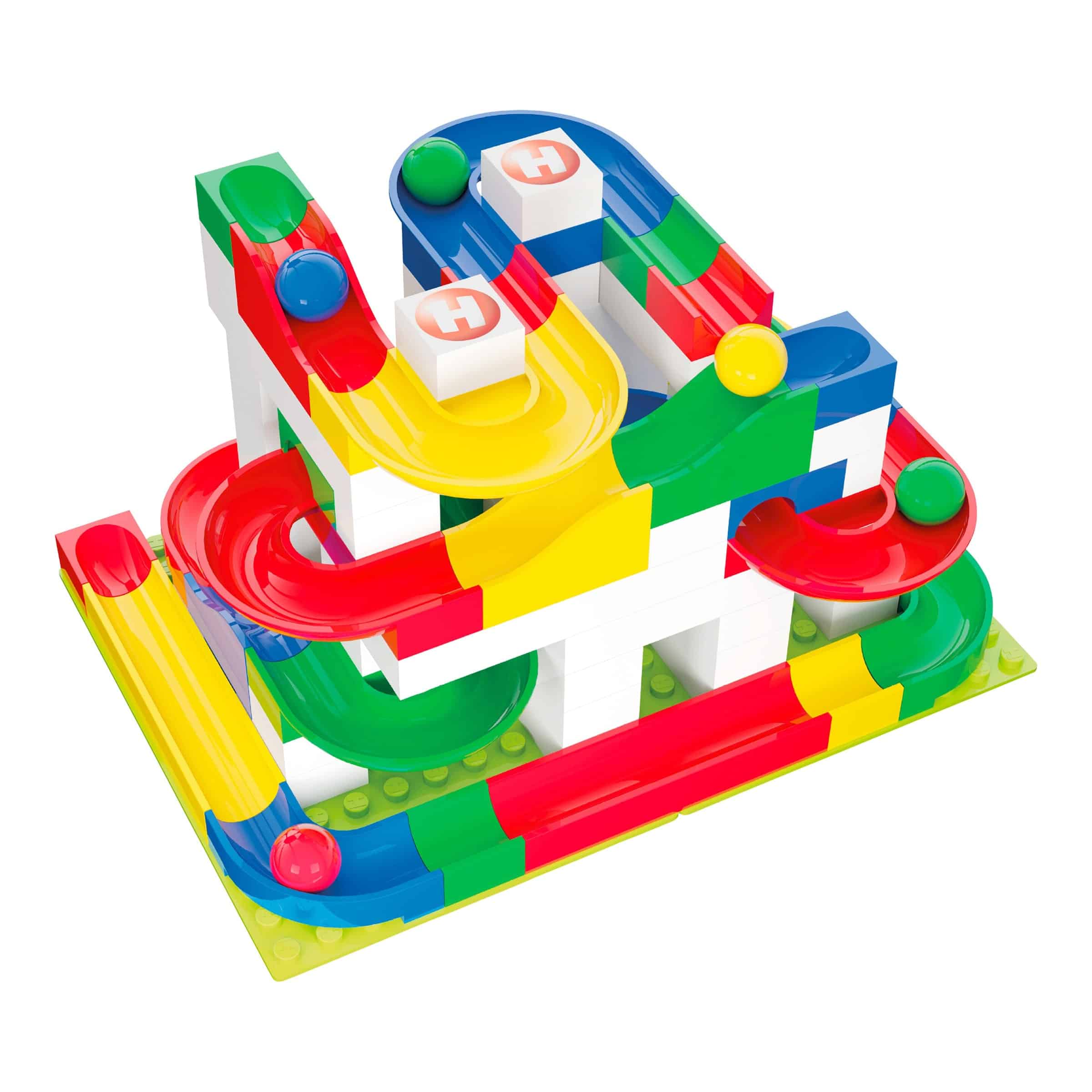 Hubelino legt größten Wert auf die Qualität und Sicherheit seiner Produkte. Der Kugelbahn Baukasten basis 123-tlg. wird aus hochwertigem ABS-Kunststoff gefertigt, der für seine Robustheit und Langlebigkeit bekannt ist. Dieses Material ist frei von Weichmachern und anderen schädlichen Substanzen, was es zu einer sicheren Wahl für Babys und Kleinkinder macht. Die Kanten der Bausteine sind abgerundet, um Verletzungen zu vermeiden, und die Farbgebung ist lichtecht, sodass die leuchtenden Farben auch nach langer Benutzung erhalten bleiben.