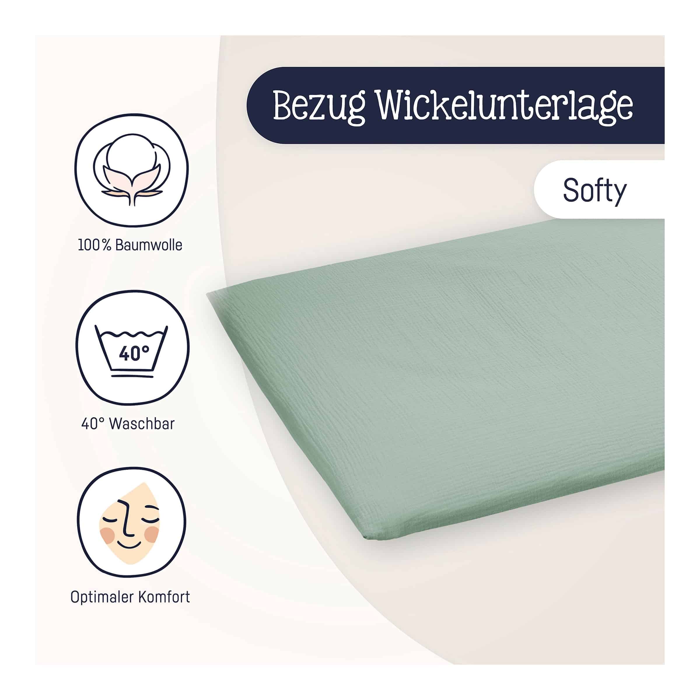 Musselin ist bekannt für seine außergewöhnliche Weichheit, die mit jeder Wäsche noch zunimmt. Der Julius Zöllner Wickelauflagenbezug bietet daher ein besonders angenehmes und hautschonendes Gefühl für Ihr Kind.