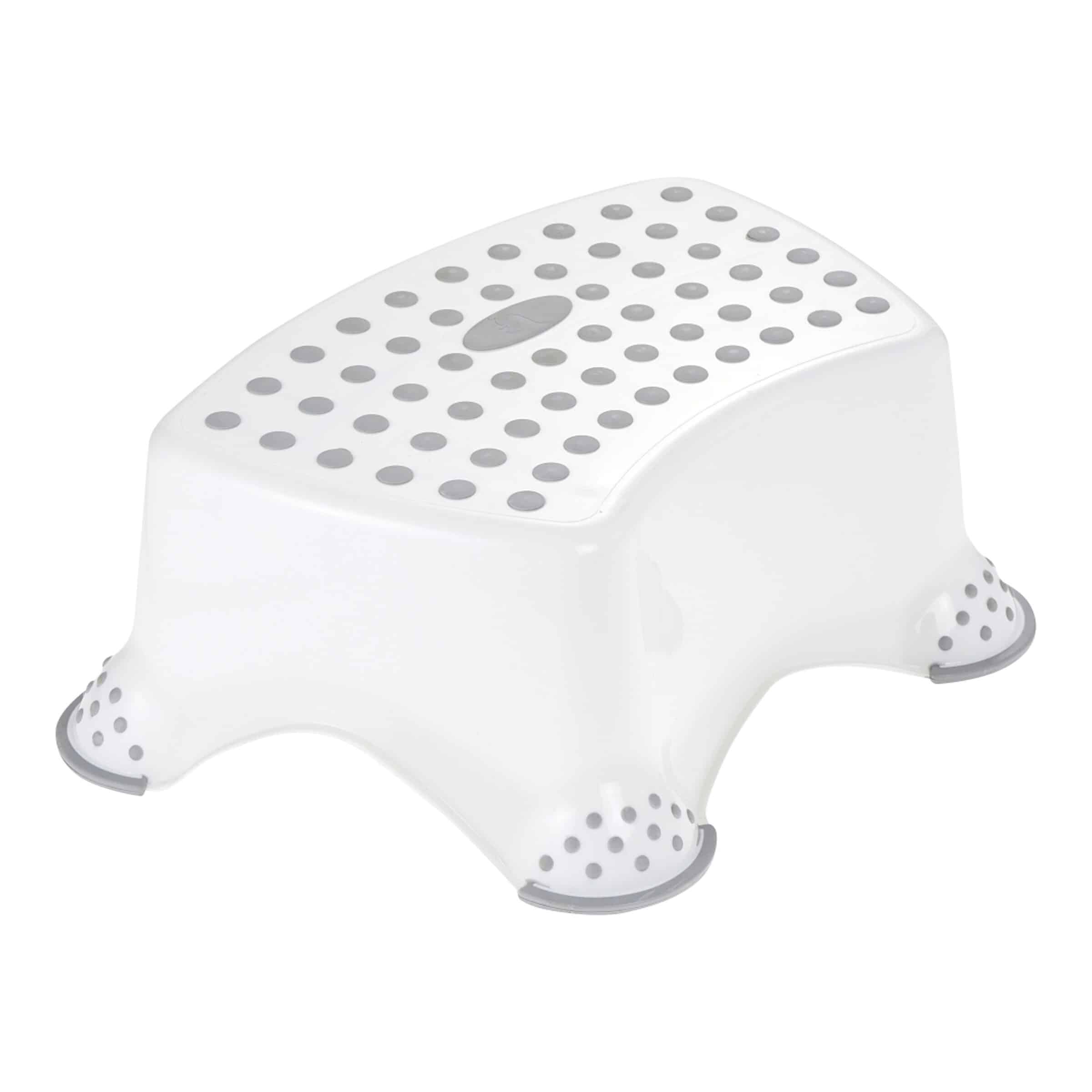 - Rutschfeste Oberflächen: Sowohl die Trittfläche als auch die Unterseite des Schemels sind mit speziellen rutschhemmenden Gummierungen versehen. Dies verhindert ein ungewolltes Verrutschen des Schemels auf glatten Böden und sorgt für einen sicheren Stand Ihres Kindes, selbst wenn die Füße nass sind.