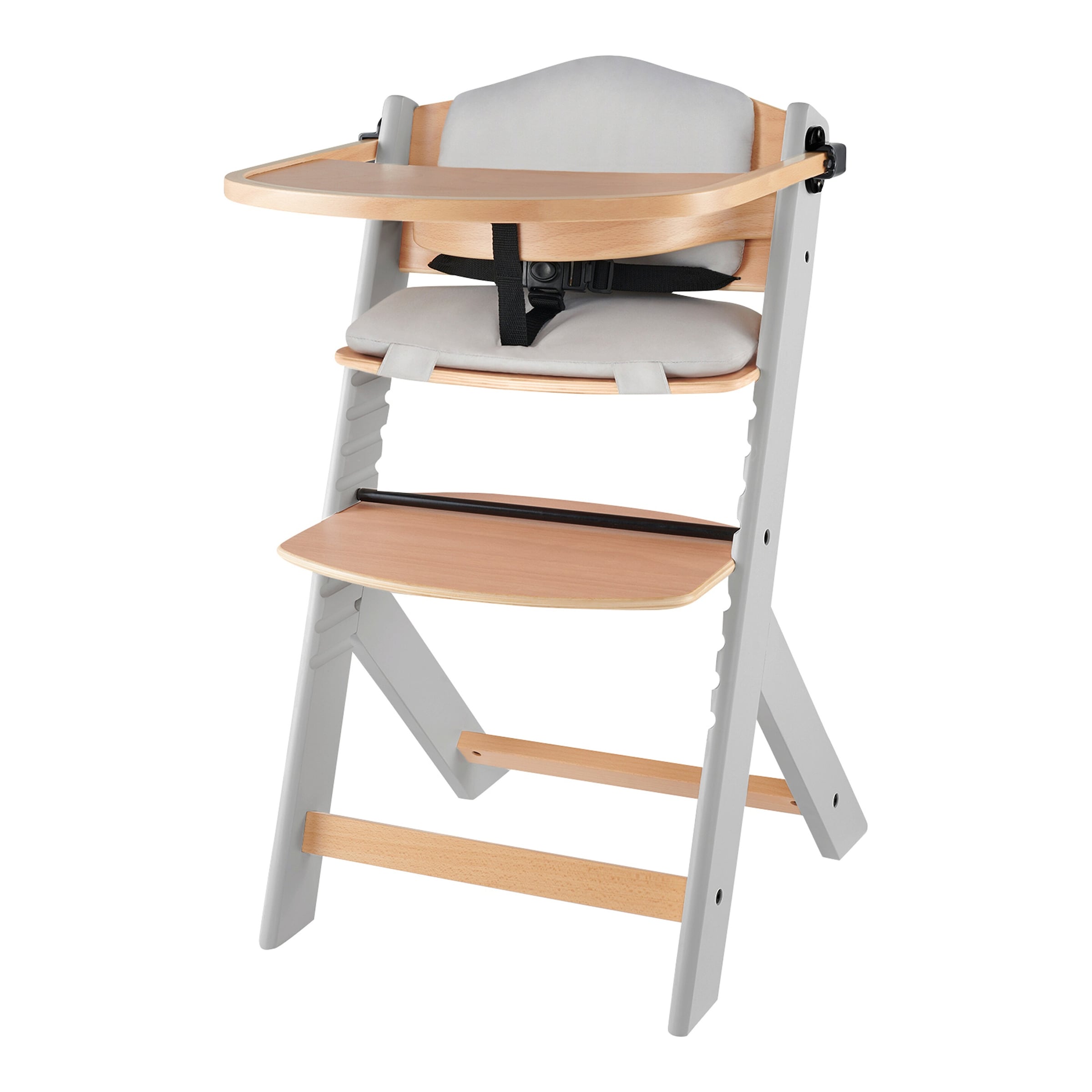 - Zwei Nutzungsmöglichkeiten: Kann als klassischer Hochstuhl mit Tablett oder als tieferer Stuhl ohne Tablett genutzt werden, um den Stuhl direkt an den Familientisch zu schieben.
