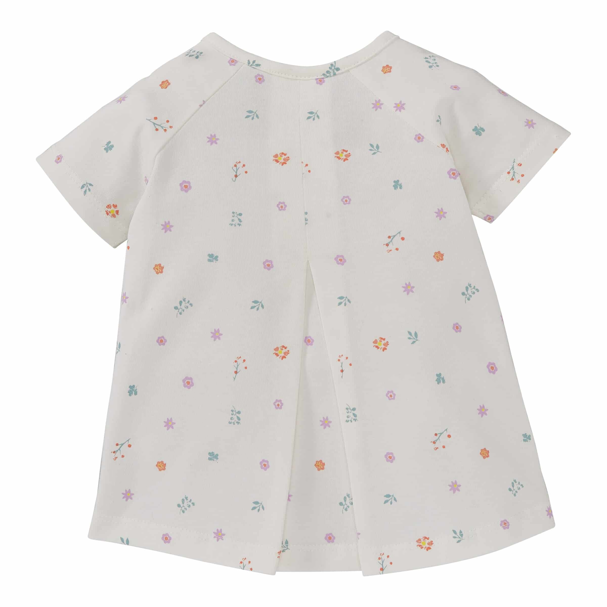 | Design-Merkmale | Einzigartiger und farbenfroher Blumenprint auf der Vorderseite, wasserbasierte und umweltfreundliche Druckfarben. Zeitloser Schnitt mit geradem Saum und kurzen Ärmeln. |