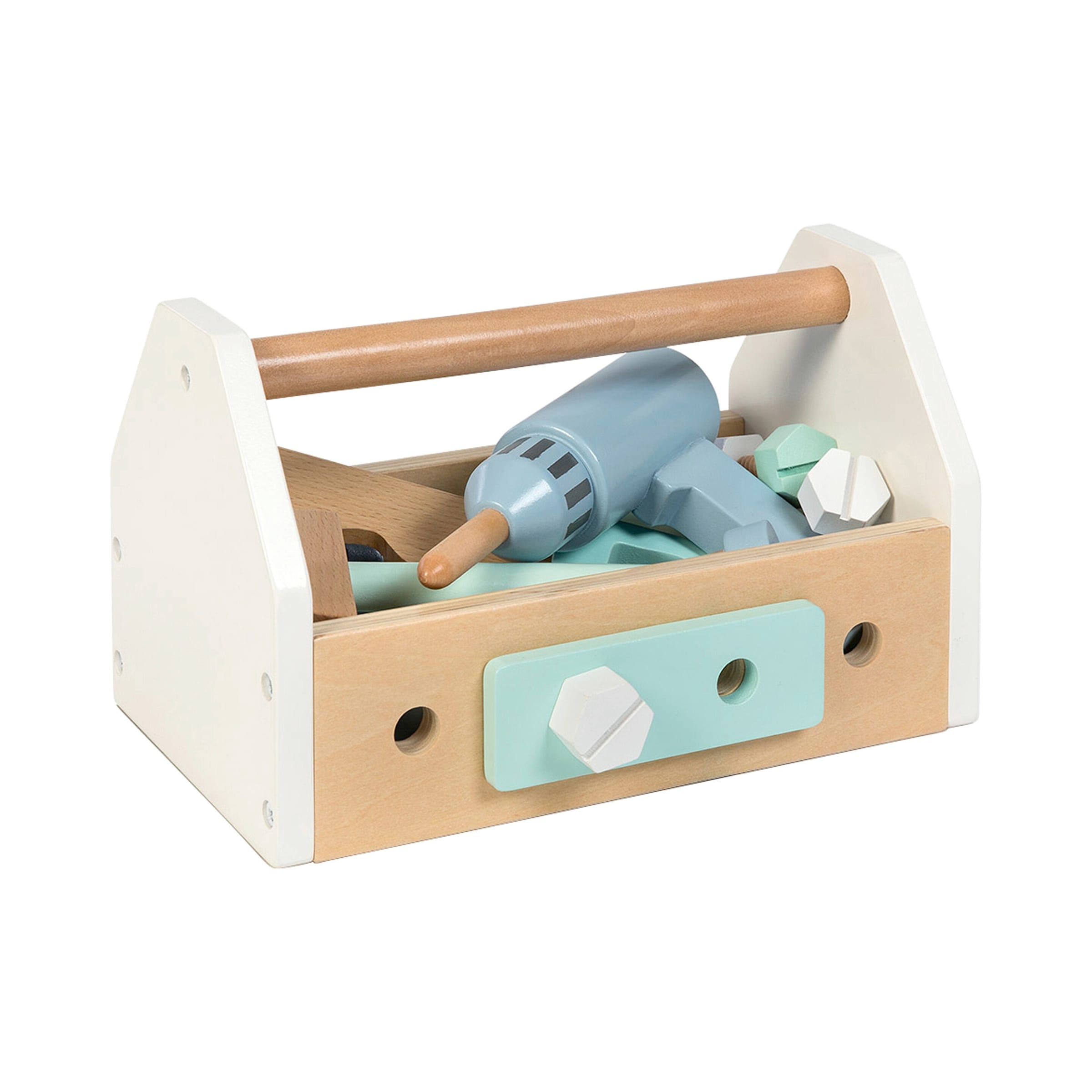 | Zubehör (optional/enthalten) | Integrierte Werkzeugleiste, Schrauben, Muttern, Holzteile, kindgerechte Werkzeuge (Hammer, Säge etc.) |