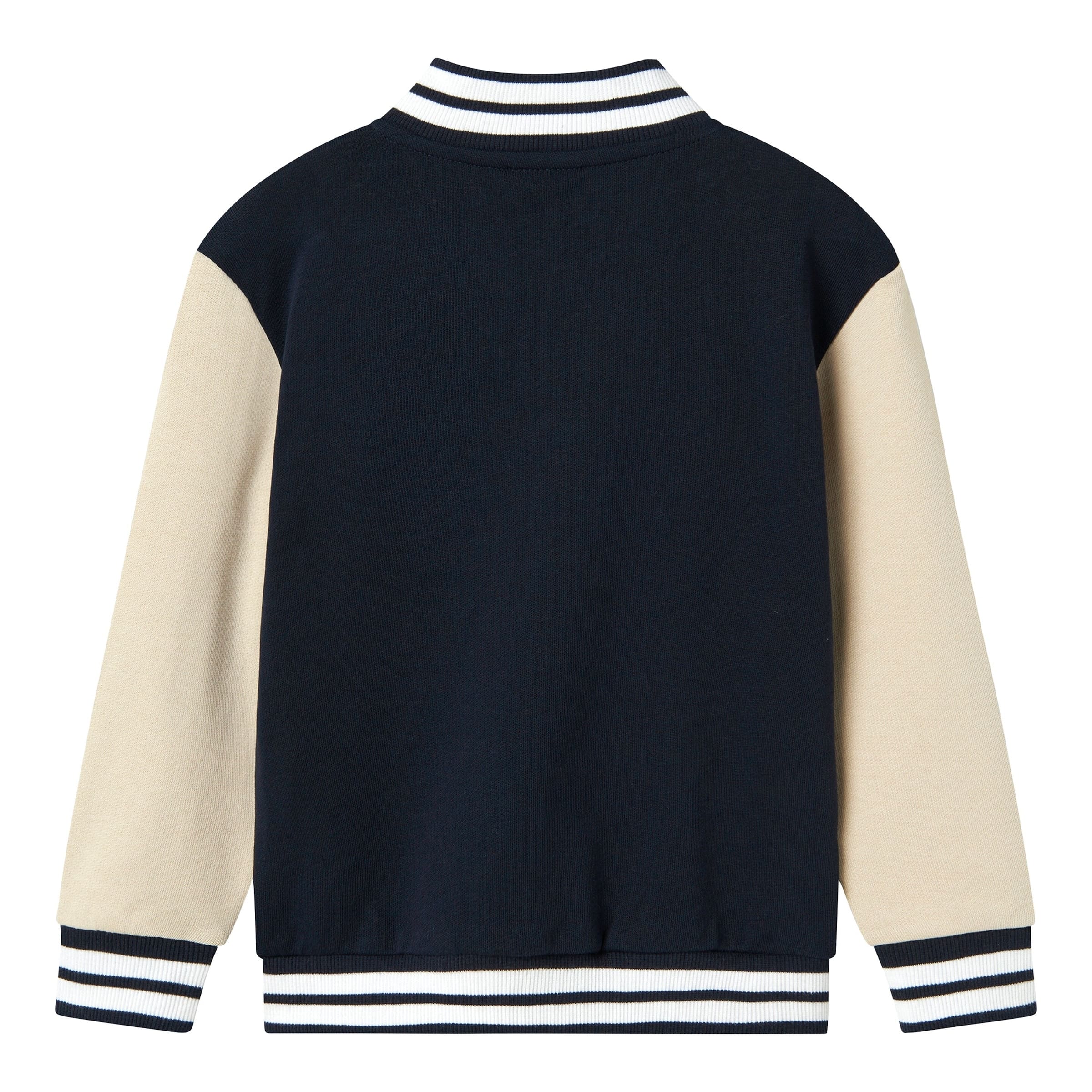 Der „College-Stil“ bezieht sich auf das klassische Design, das von Sportteams an amerikanischen Universitäten inspiriert ist. Merkmale sind oft kontrastierende Ärmel, ein Rundhalsausschnitt oder ein Reißverschluss vorne, gerippte Bündchen und typische sportliche Applikationen oder Schriftzüge, die an Sportbekleidung erinnern.
