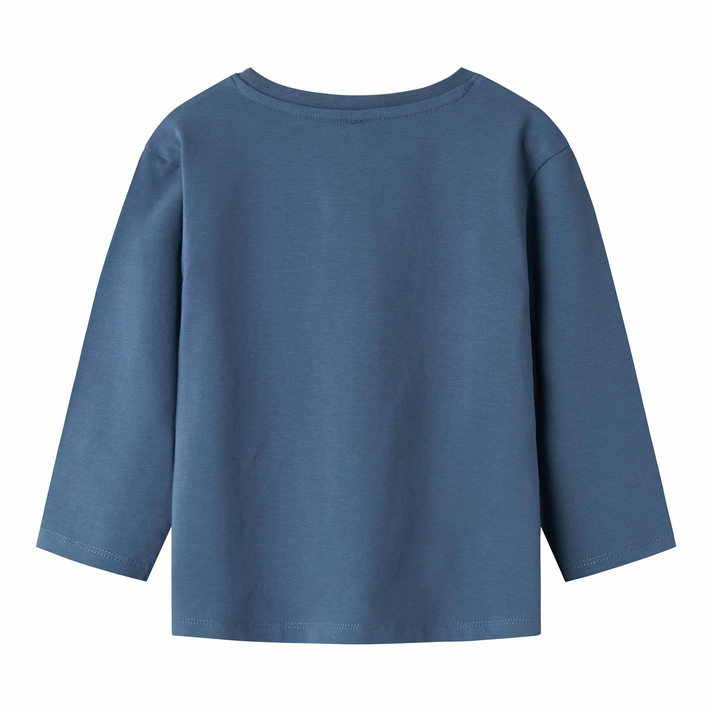 Die Konstruktion des Shirts beinhaltet sorgfältige Nähte, insbesondere an den Ärmeln, dem Kragen und dem Saum. Flachnähte werden dort eingesetzt, wo sie den Tragekomfort maximieren können, um Hautirritationen zu vermeiden. Die Bündchen an den Ärmeln sind so konzipiert, dass sie eng genug anliegen, um Wärme zu speichern, aber nicht so straff, dass sie einschnüren. Dies trägt zur allgemeinen Bequemlichkeit und Funktionalität des Kleidungsstücks bei. Die Wahl des Schnitts, ein klassischer Rundhalsausschnitt, ist bewusst getroffen worden, um Vielseitigkeit zu gewährleisten. Er ist weder zu eng noch zu weit und lässt sich leicht über den Kopf ziehen, was den Anziehprozess für Eltern und Kinder gleichermaßen vereinfacht.