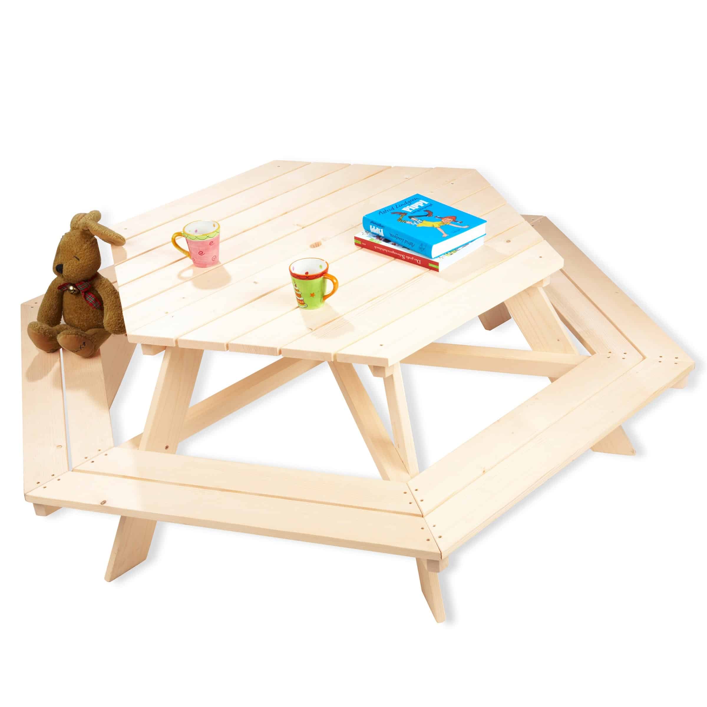 Die Pinolino Kindersitzgruppe Nicki ist primär für den Innenbereich konzipiert. Das massive Holz und die Lackierung sind zwar widerstandsfähig, jedoch ist ein längerer Kontakt mit Feuchtigkeit oder direkter Sonneneinstrahlung nicht empfohlen und kann zu Schäden am Material führen. Für den Außeneinsatz gibt es spezielle Gartenmöbel für Kinder, die entsprechend witterungsbeständig sind.