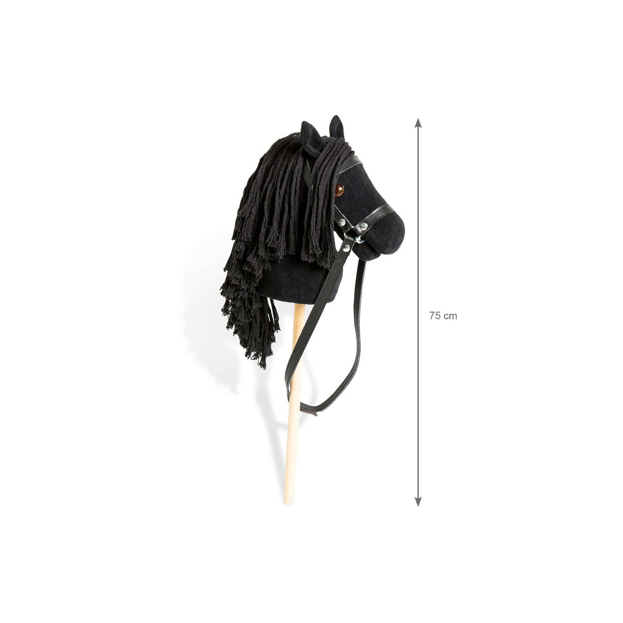 Die genauen Maße können je nach Modell leicht variieren, liegen aber typischerweise bei einer Länge von etwa 75 cm und einer Höhe von ca. 55 cm. Dies macht es gut handhabbar für Kinder ab 3 Jahren. Die Höhe des Stabes ermöglicht eine aufrechte und natürliche Haltung beim Nachahmen des Reitens.