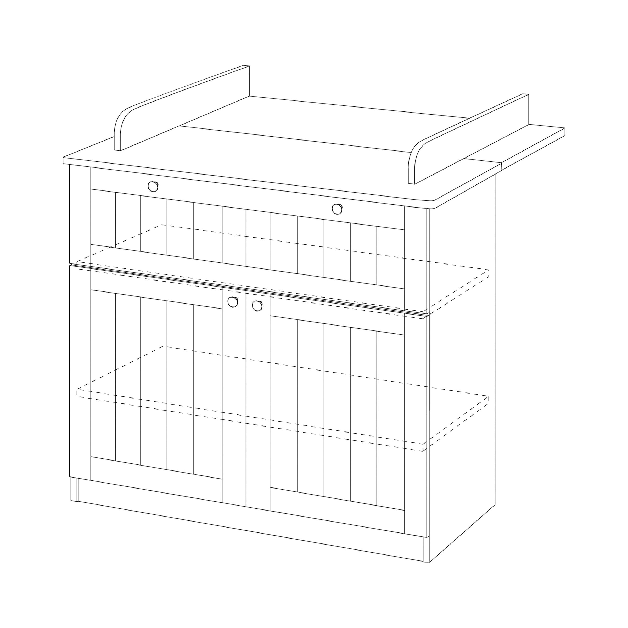 | Stauraumkonzept | Zwei geräumige Schubladen für Kleidung und Windeln, sowie eine Tür mit Einlegeboden für weitere Aufbewahrung. |