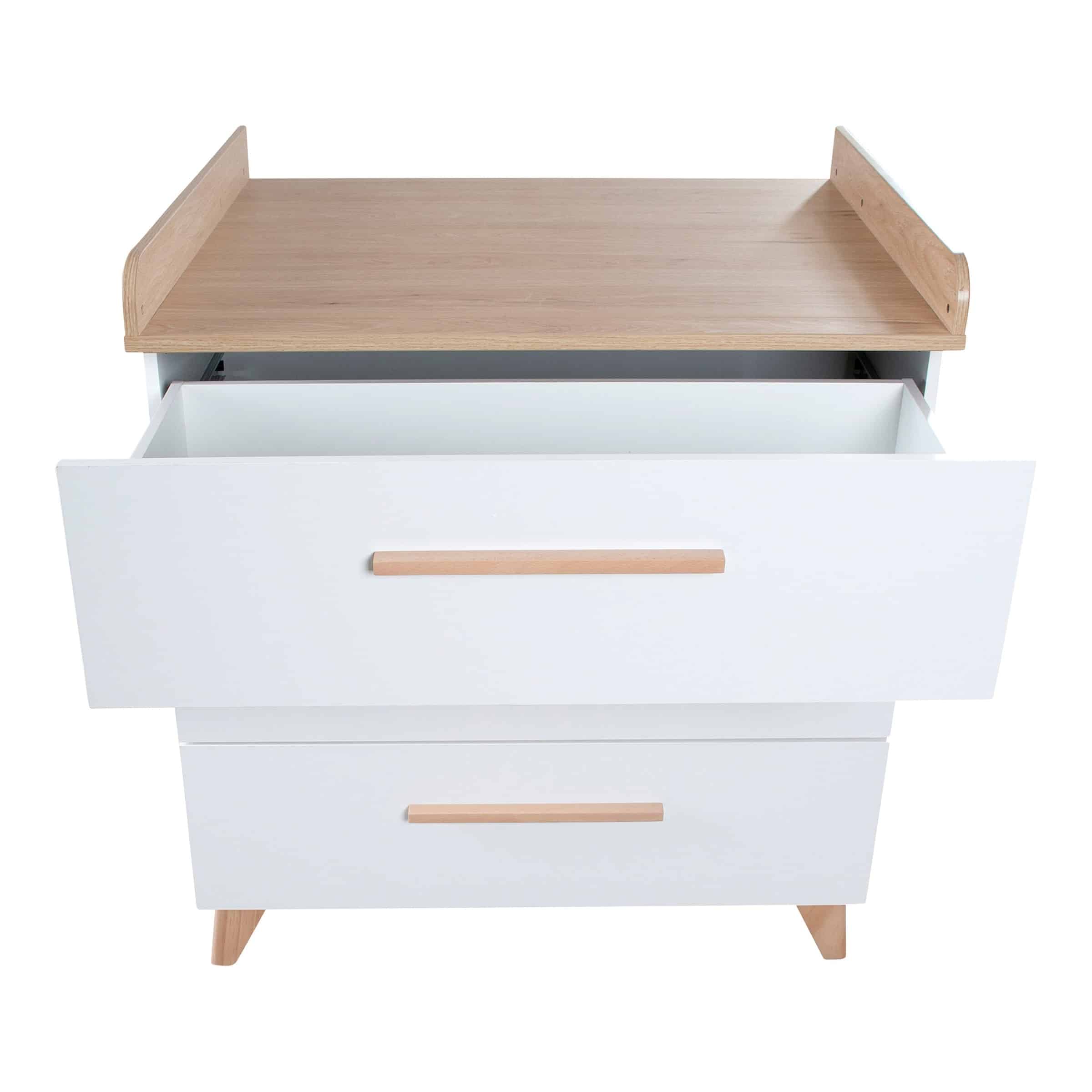- Großzügiger Stauraum: Mehrere Schubladen und ein integriertes Regal bieten reichlich Platz für alle Babyutensilien, von Windeln bis zur Erstausstattung.