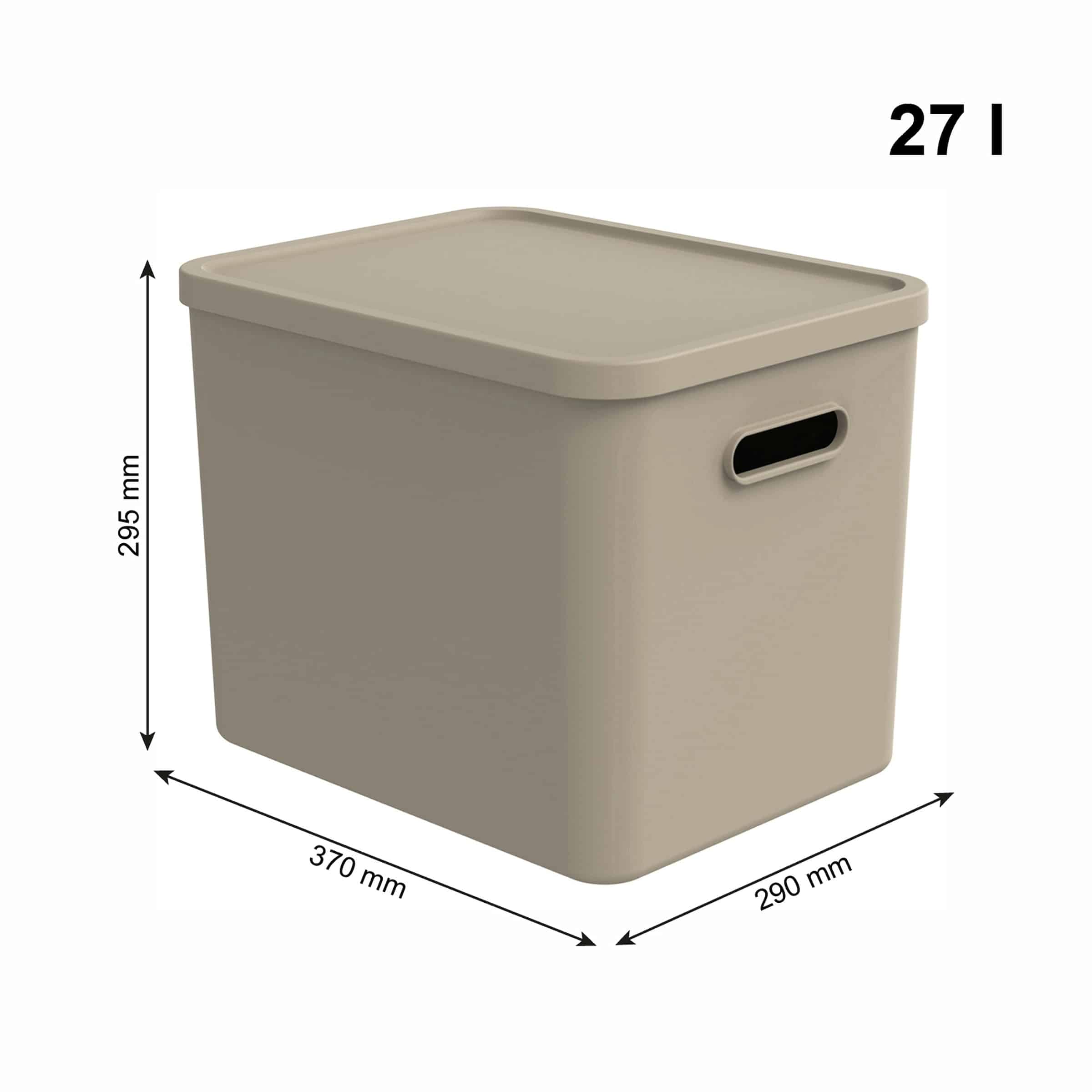 Die 27-Liter-Box ist vielseitig einsetzbar. Sie eignet sich hervorragend für Spielzeug, Windeln, Pflegeutensilien, Babykleidung, aber auch für Haushaltsgegenstände im Keller oder in der Garage. Die geschlossene Form schützt den Inhalt vor Staub.