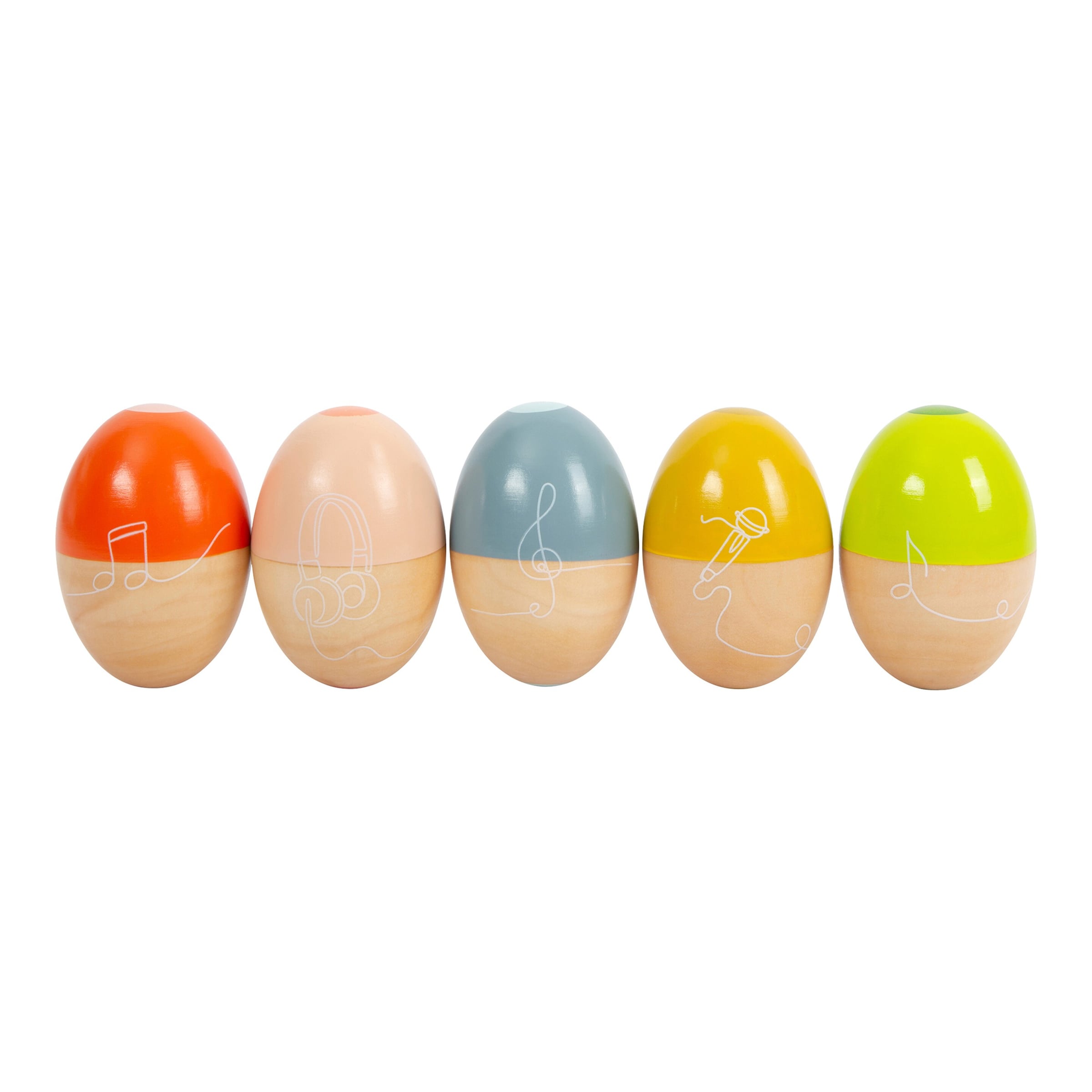 Die Musikeier werden aus hochwertigem Holz gefertigt, das aus zertifizierter, nachhaltiger Forstwirtschaft stammt. Die Oberflächen sind mit schadstofffreien, speichelfesten Farben behandelt, die den strengen europäischen Sicherheitsstandards für Spielzeug entsprechen.