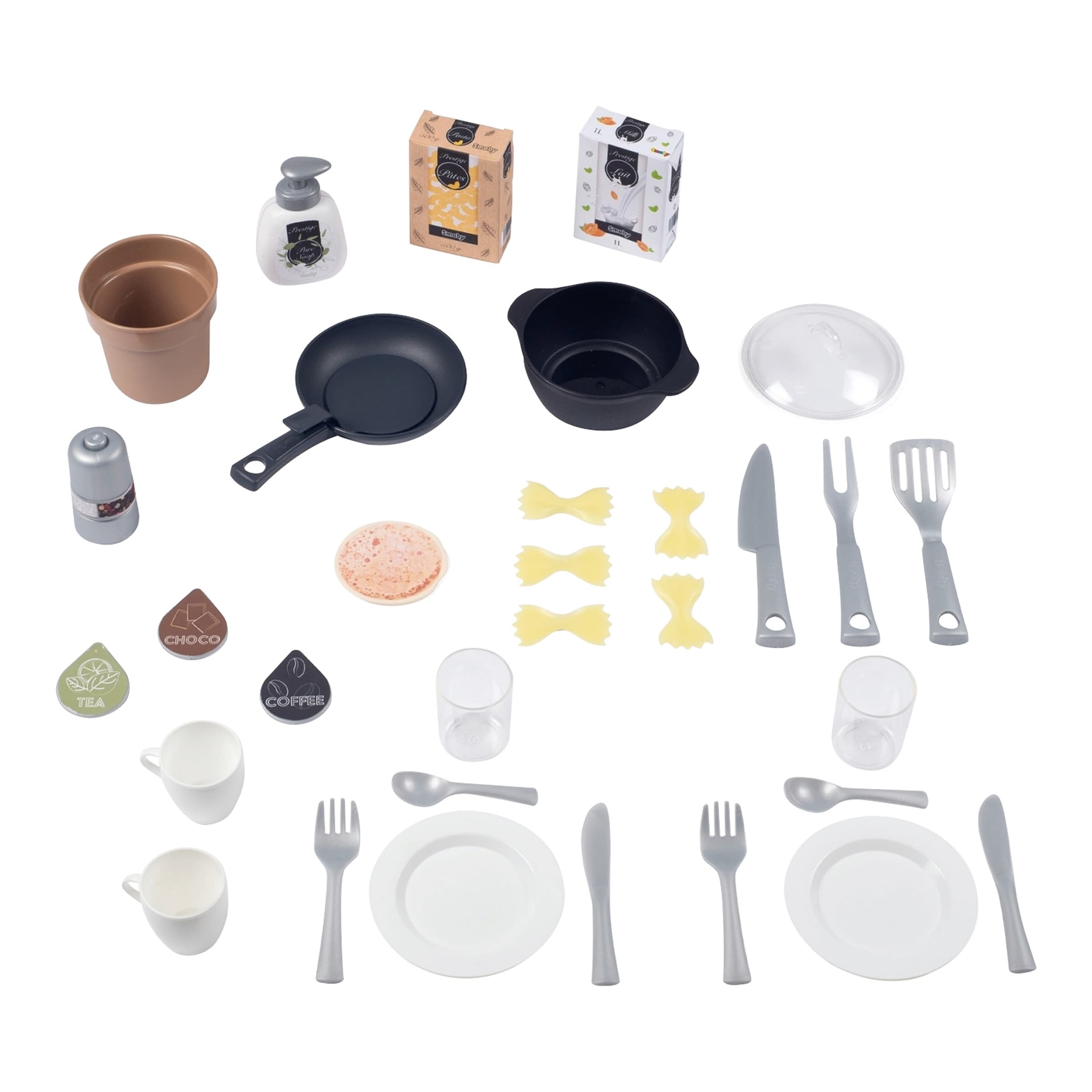 Der Lieferumfang variiert je nach spezifischer Edition der Smoby Kinderküche Loft. In der Regel sind jedoch essenzielle Küchenutensilien wie Kochgeschirr (Töpfe, Pfannen), Geschirr (Teller, Tassen, Besteck) und einige Spiel-Lebensmittel enthalten, um sofortigen Spielspaß zu ermöglichen.