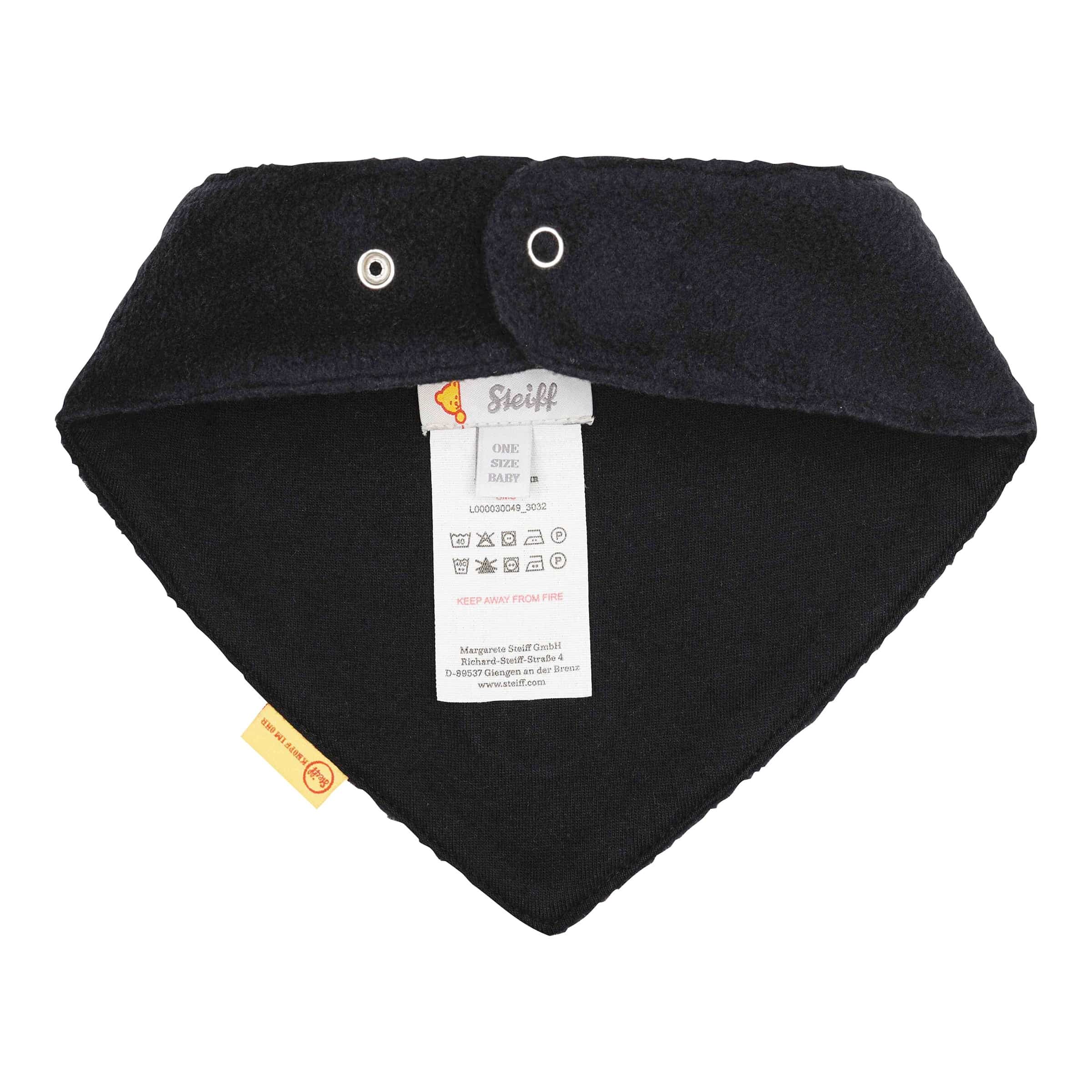 | Design & Verarbeitung | Klassische Dreiecksform für einfache Handhabung, sicherer Halt durch individuelle Anpassungsmöglichkeit, ikonisches Steiff Teddybär-Applikation |
