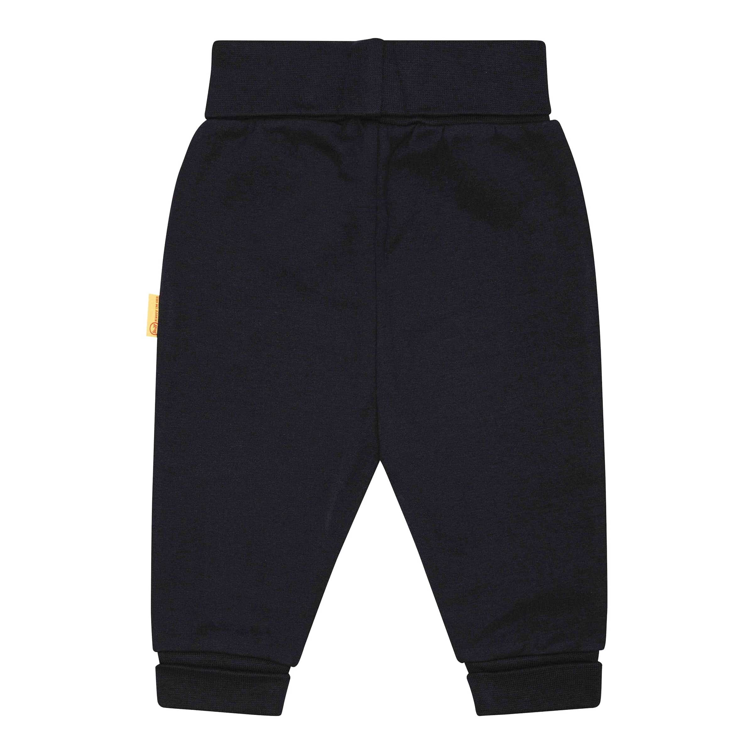 | Design-Merkmale | Elastischer Bund, ggf. mit Kordelzug, Rippbündchen an den Beinabschlüssen, dezentes Steiff Logo (z.B. als applizierter Bär) |