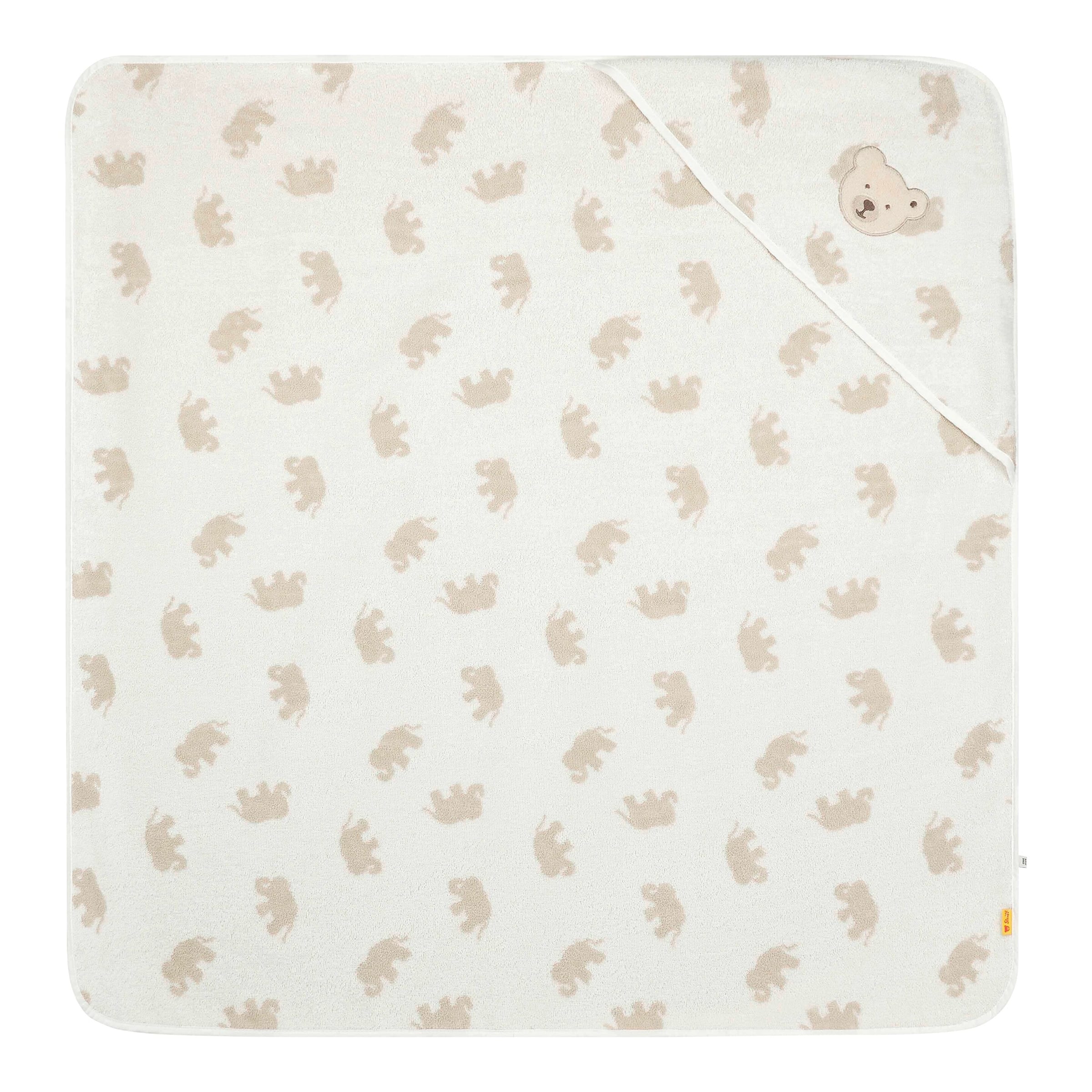 Für Wohlfühlmomente nach dem Baden: Das Steiff Kapuzenbadetuch Frottee Bär Elefanten weiss