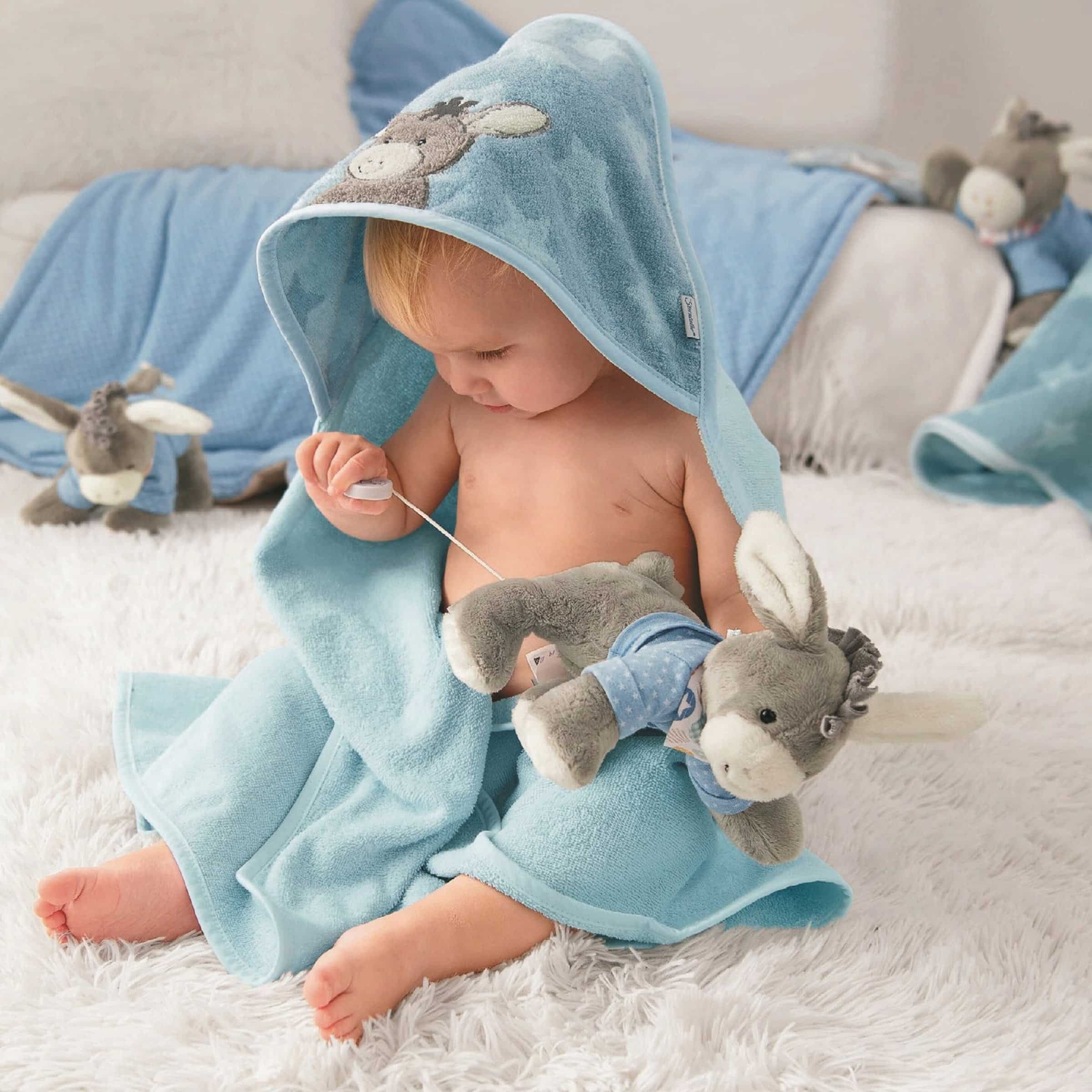 Das Sterntaler Kapuzenbadetuch 80×80 cm Blau: Sanfte Wärme und kuscheliger Komfort nach jedem Bad
