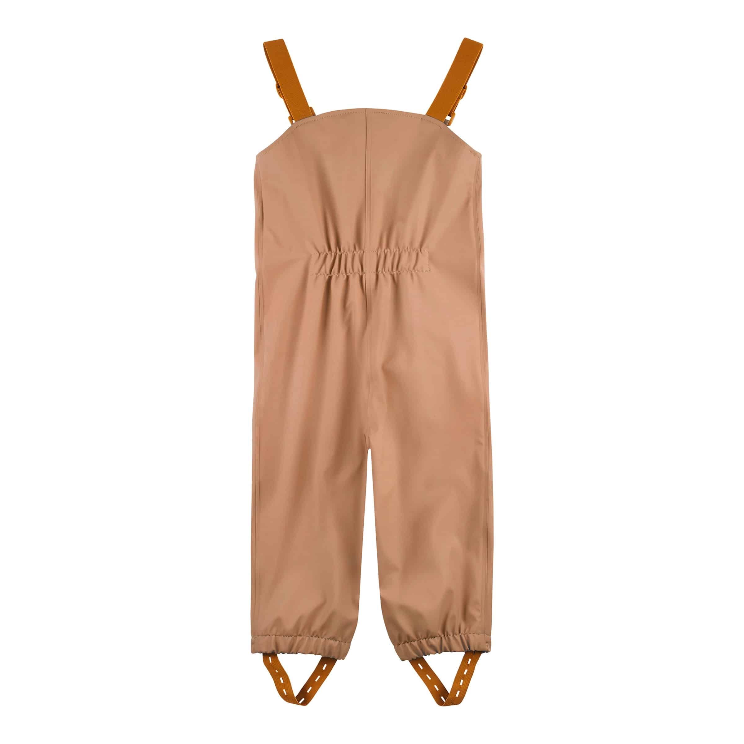 Die Regenhose ist so geschnitten, dass sie ausreichend Bewegungsfreiheit für aktive Kinder bietet. Die Träger sorgen für einen sicheren Sitz, während die elastischen Beinabschlüsse ein Verrutschen verhindern. Die Schnitte sind in der Regel etwas weiter gehalten, um Platz für zusätzliche Kleidungsschichten zu lassen.