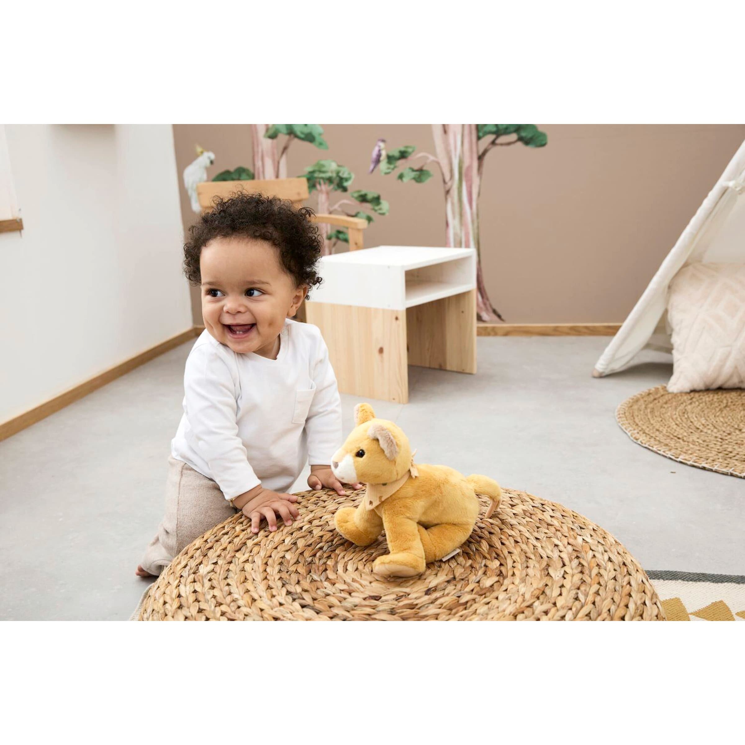 - Zartes Plüschmaterial: Die Oberfläche des Löwen besteht aus einem weichen, anschmiegsamen Plüsch, der zum Streicheln und Kuscheln einlädt und gleichzeitig sanft zur empfindlichen Babyhaut ist.