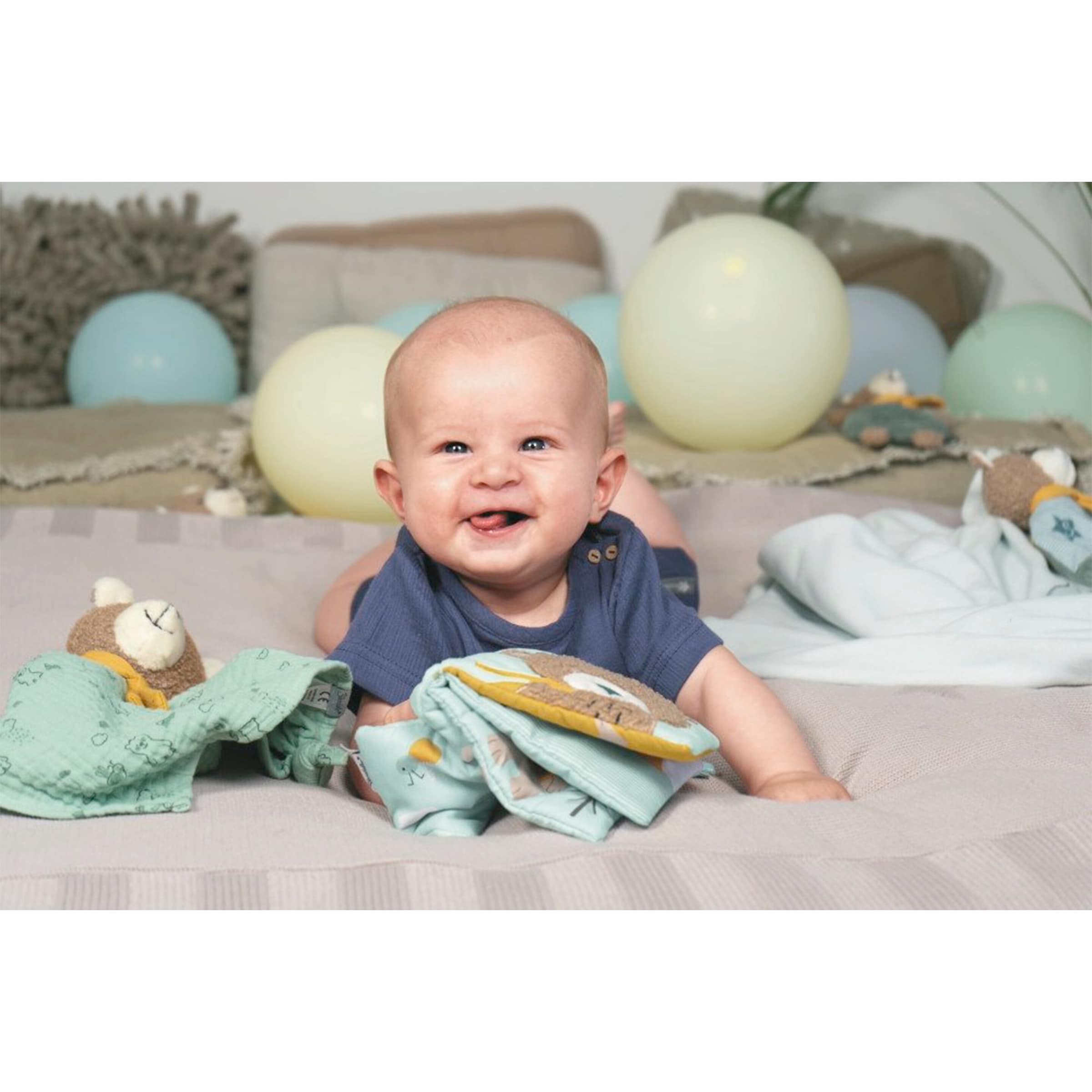 - Sensorische Stimulation: Unterschiedliche Texturen und ein integriertes Quietschelement (sofern vorhanden) regen die Sinne des Babys an und fördern die kognitive Entwicklung.
