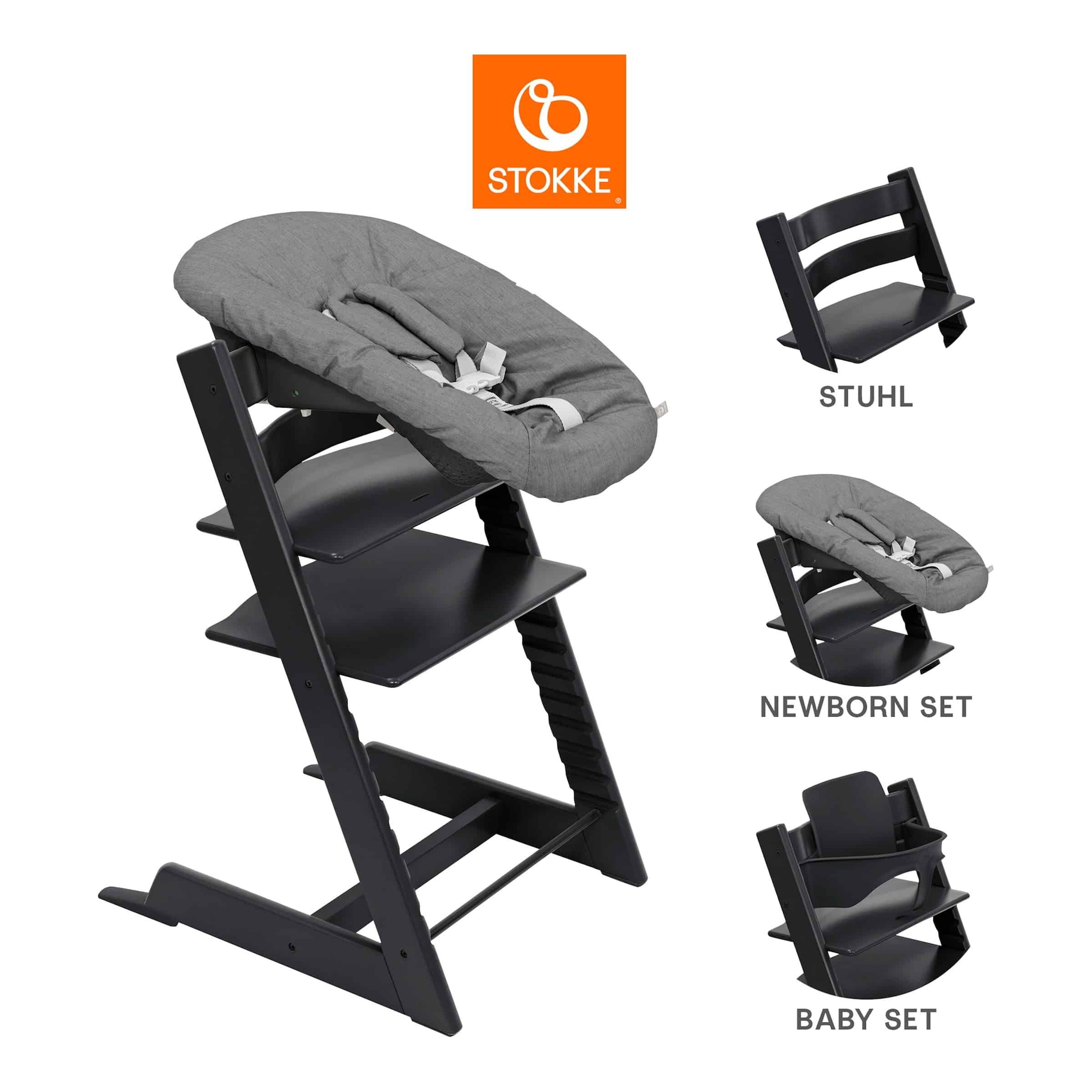 FAQ – Häufig gestellte Fragen zu Stokke® Tripp Trapp® Bundle Treppenhochstuhl inkl. Newbornset deep grey & Babyset