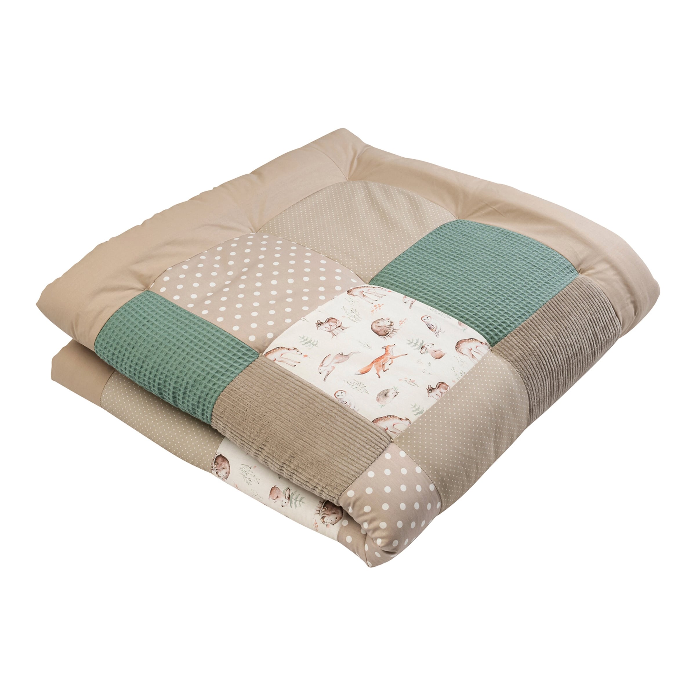 Die Hauptvorteile liegen in der Kombination aus hochwertigen, atmungsaktiven Materialien (Waffelpiqué und Cord), der vielseitigen Verwendbarkeit als Krabbeldecke und Laufgittereinlage, der pflegeleichten Handhabung und dem stilvollen, dezenten Design, das sich gut in jedes Kinderzimmer integriert.